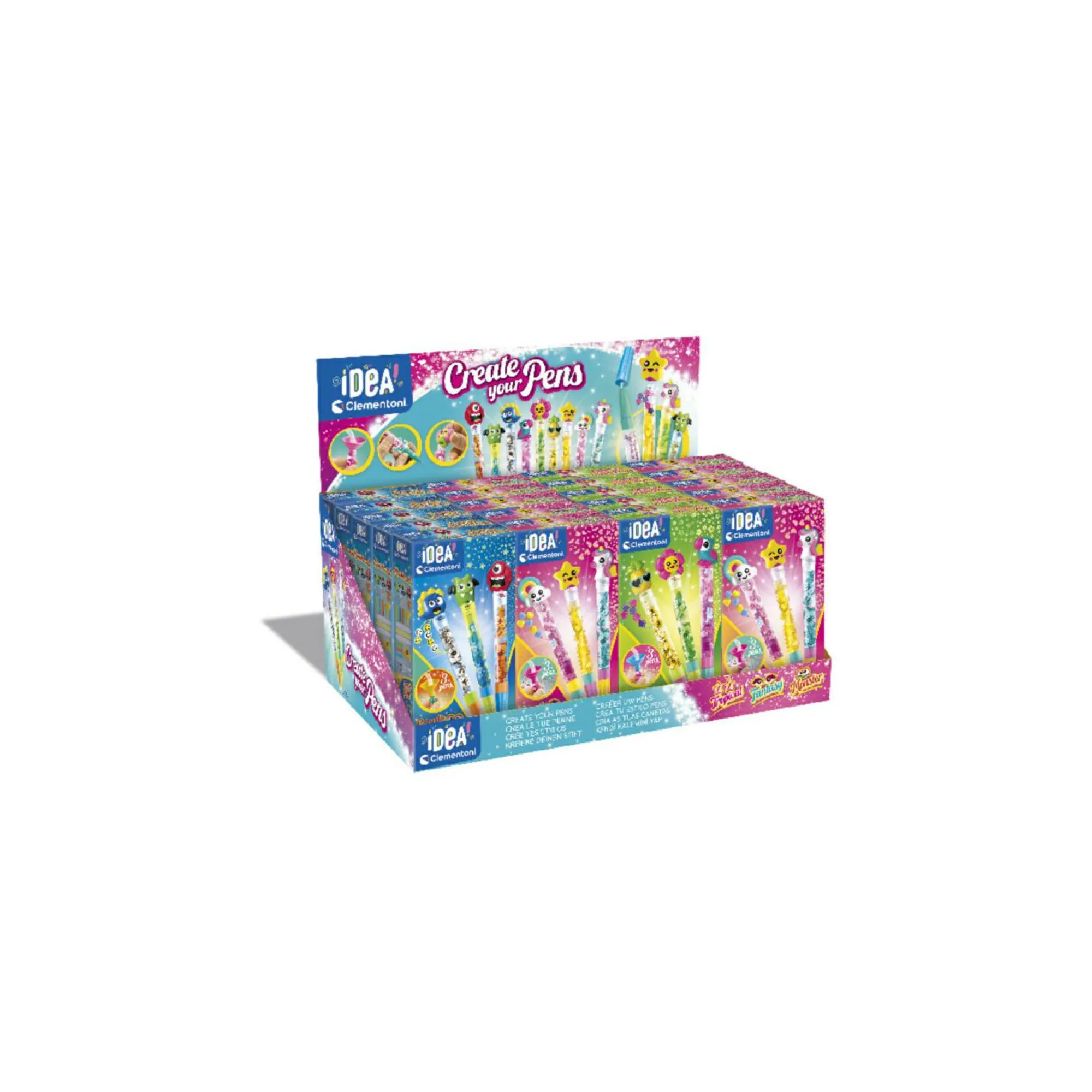Un pratico e ricco kit composto da: 3 penne, 4 inchiostri di diversi colori, 3 personaggi e tutti gli strumenti per realizzarle.