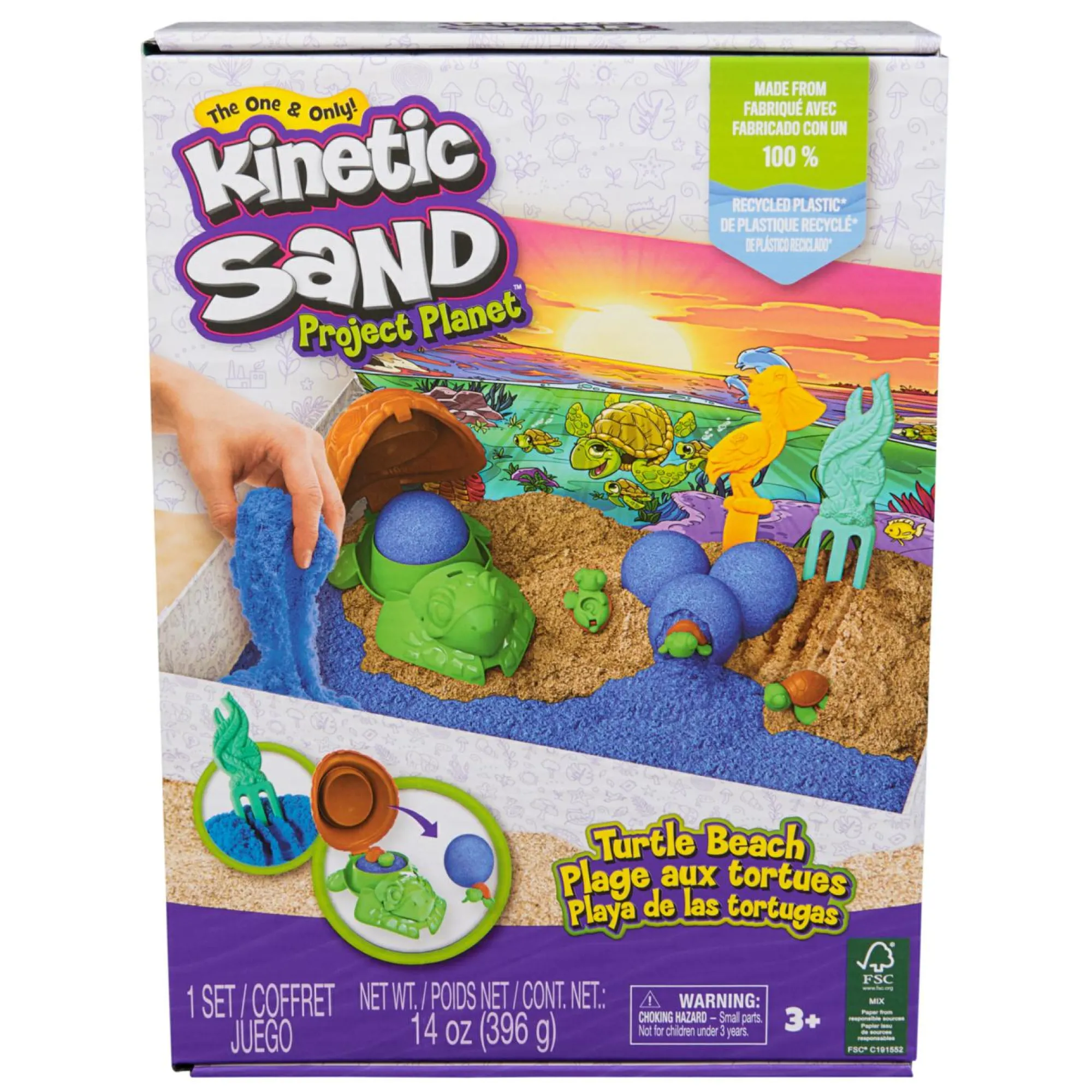guarda al futuro con i giocattoli Kinetic Sand Project Planet, realizzati con il 100% di plastica riciclata destinata a finire negli oceani e imballaggio certificato FSC.