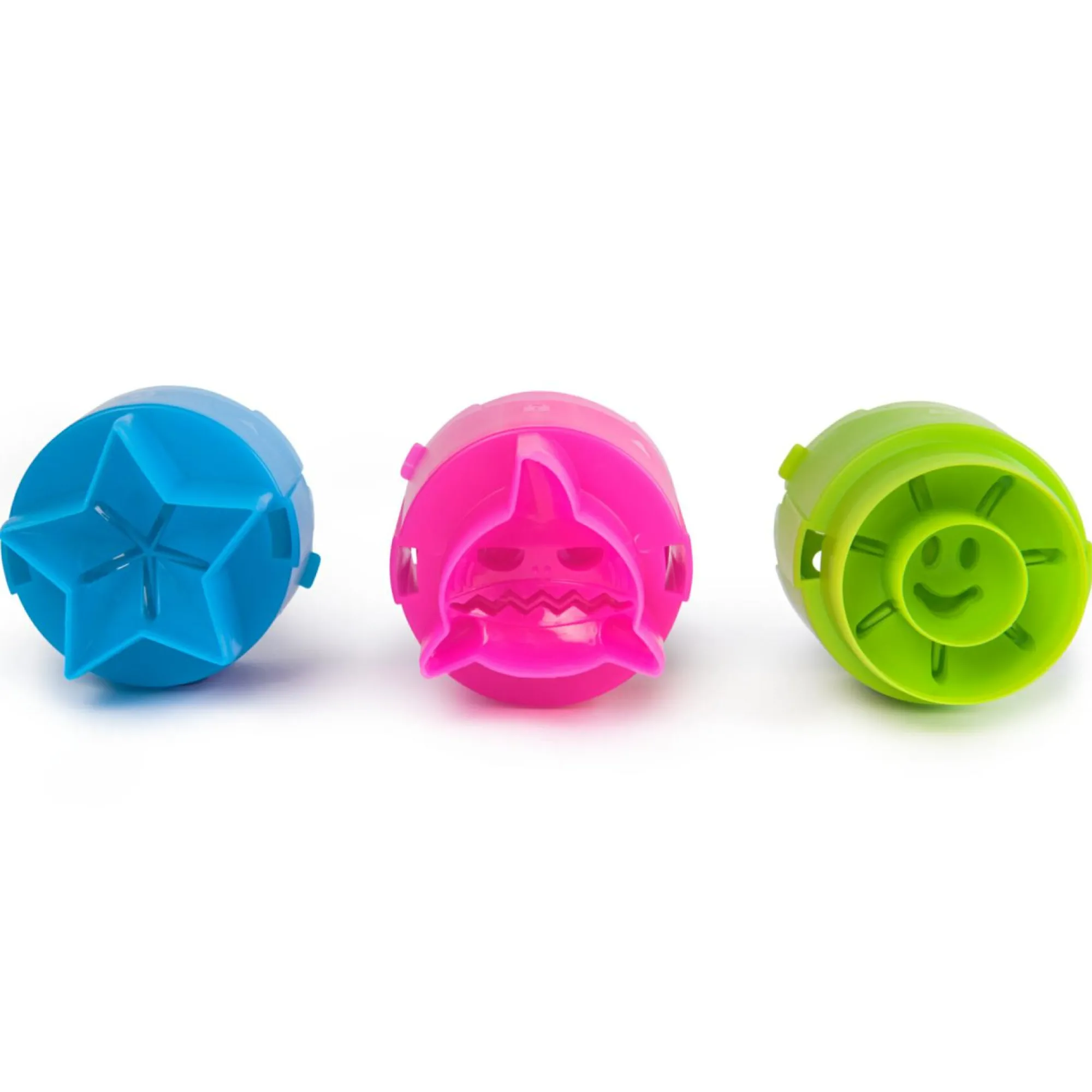 include sabbia rosa, gialla e blu, uno stampo a forma di scarpa, un accessorio per appiattire e creare onde, uno stampo e 3 timbri per lo stampo.