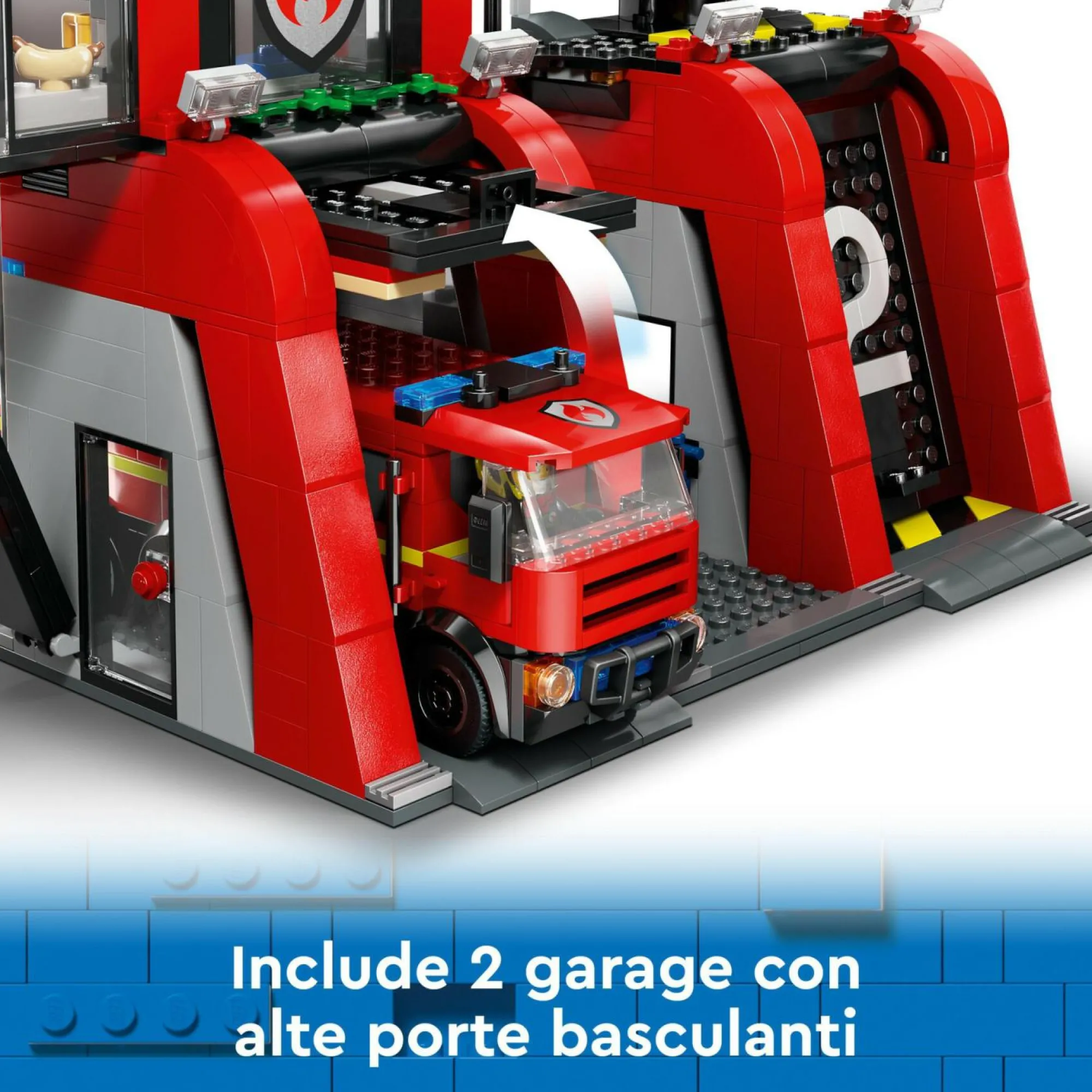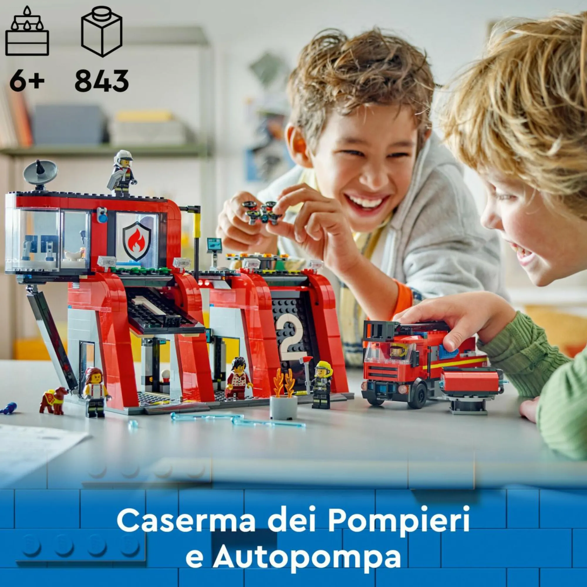 Caserma dei Pompieri e Autopompa giocattolo: questo set LEGO City contiene una moderna caserma dei vigile del fuoco con centro di controllo e veicoli d’emergenza, per avventure antincendio ricche d’azione