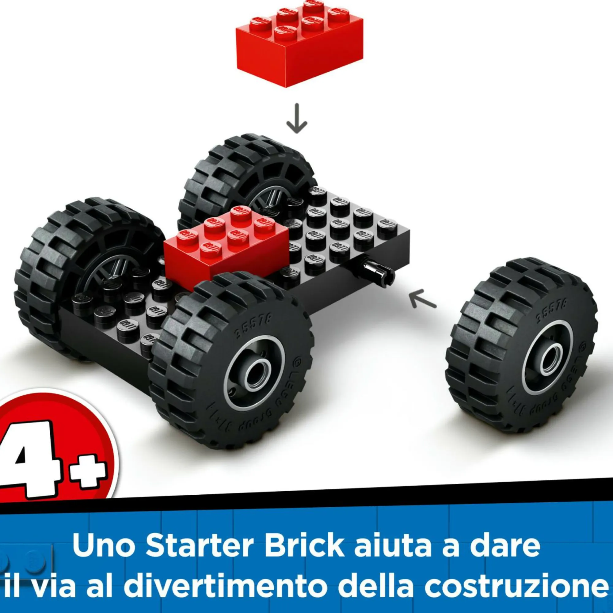 Ruspa giocattolo LEGO per bambini 4+: i piccoli possono posizionare il cartello, usare i coni per delimitare l’area di lavoro e usare la pala dell’escavatore giocattolo per sgomberare le macerie