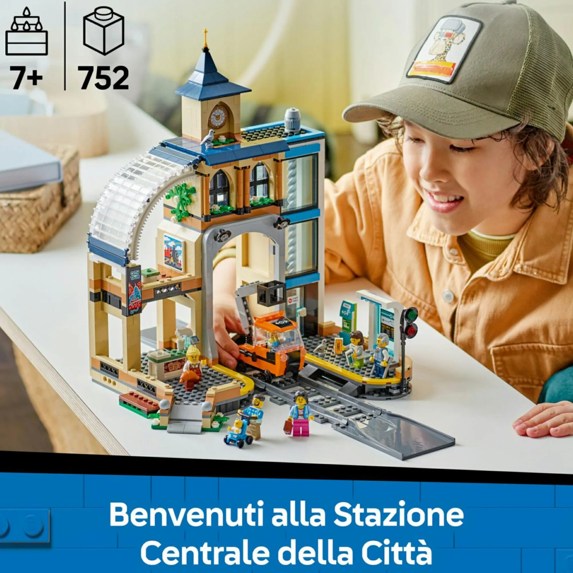 Stazione ferroviaria LEGO: lascia che i piccoli si divertano a costruire il set Stazione Centrale, un gioco creativo per bambini e bambine da 7 anni in su, ricco di funzioni, con cui gestire il traffico dei tuoi treni giocattolo LEGO (non inclusi)