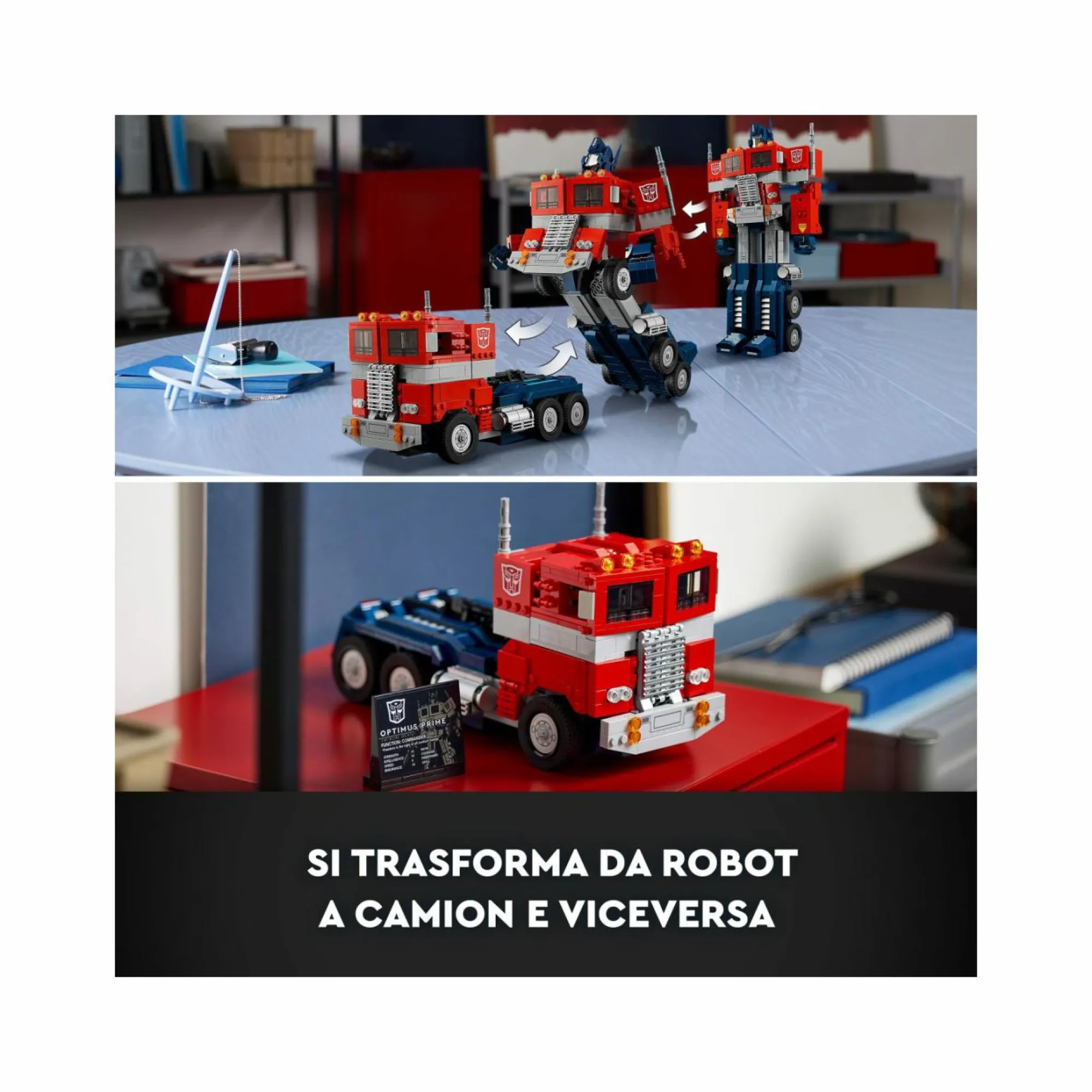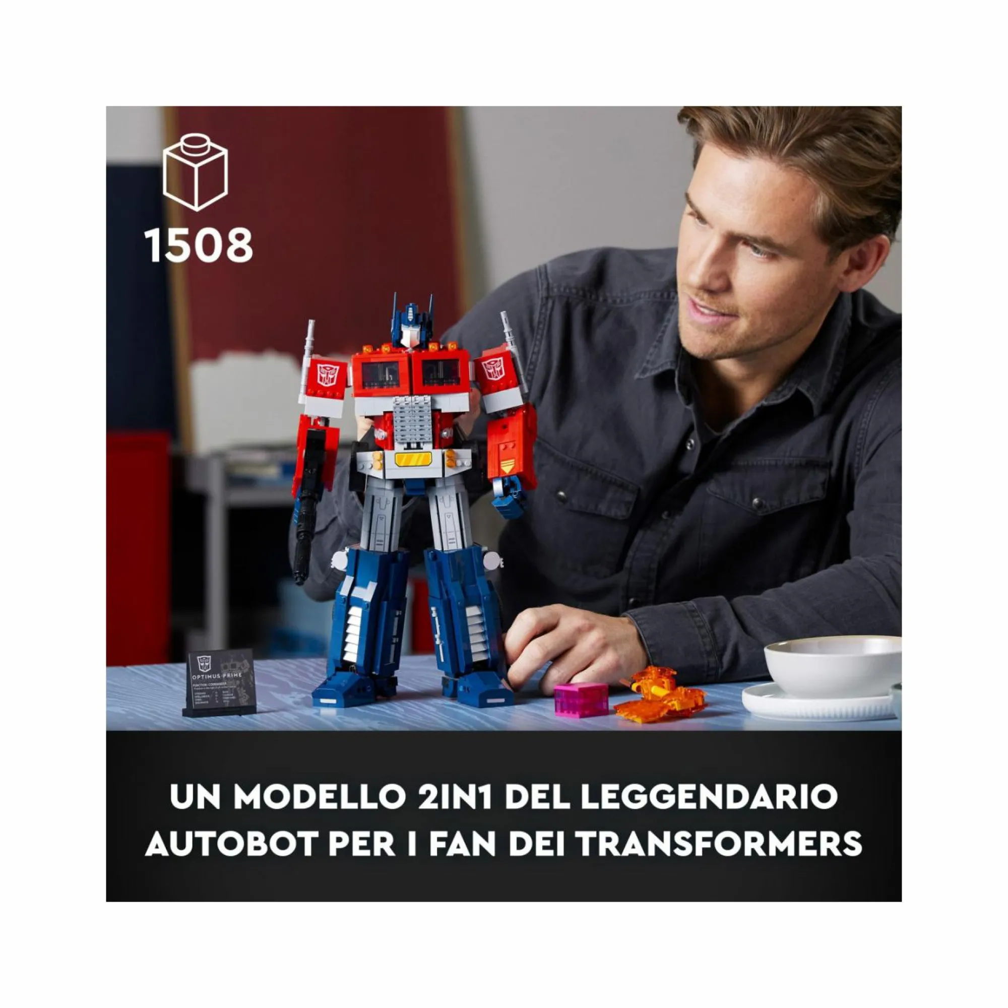 Un set LEGO per adulti con cui realizzare Optimus Prime, il leggendario Transformers Leader degli Autobot: un dettagliato modellino da costruire 2 in 1 che si trasforma da robot a camion e viceversa