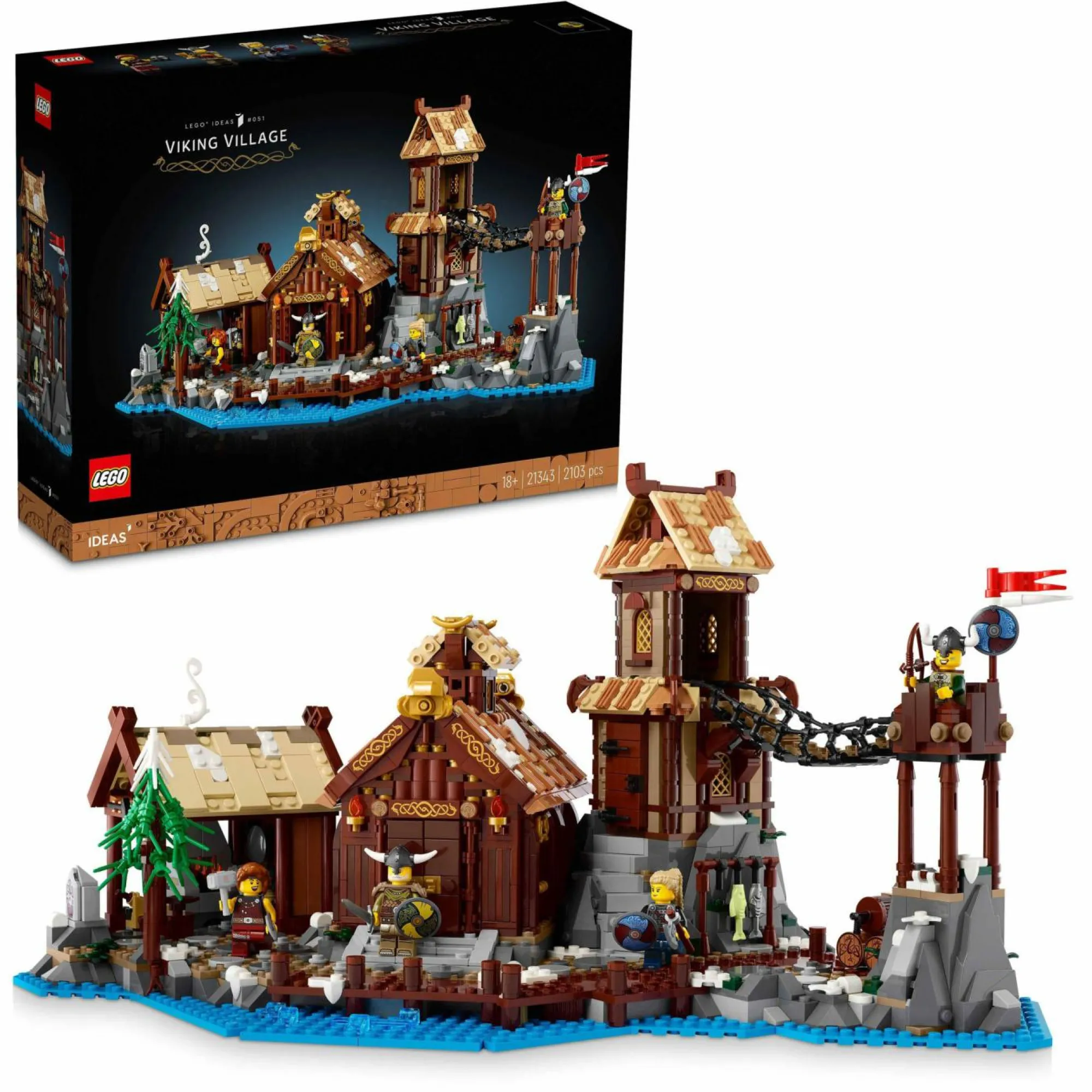 Viaggia nel tempo e costruisci i modellini collegabili di una casa vichinga, di un’officina da fabbro e di una torre di guardia, con il kit di modellismo LEGO Ideas per adulti il Villaggio Vichingo, da 2.103 pezzi