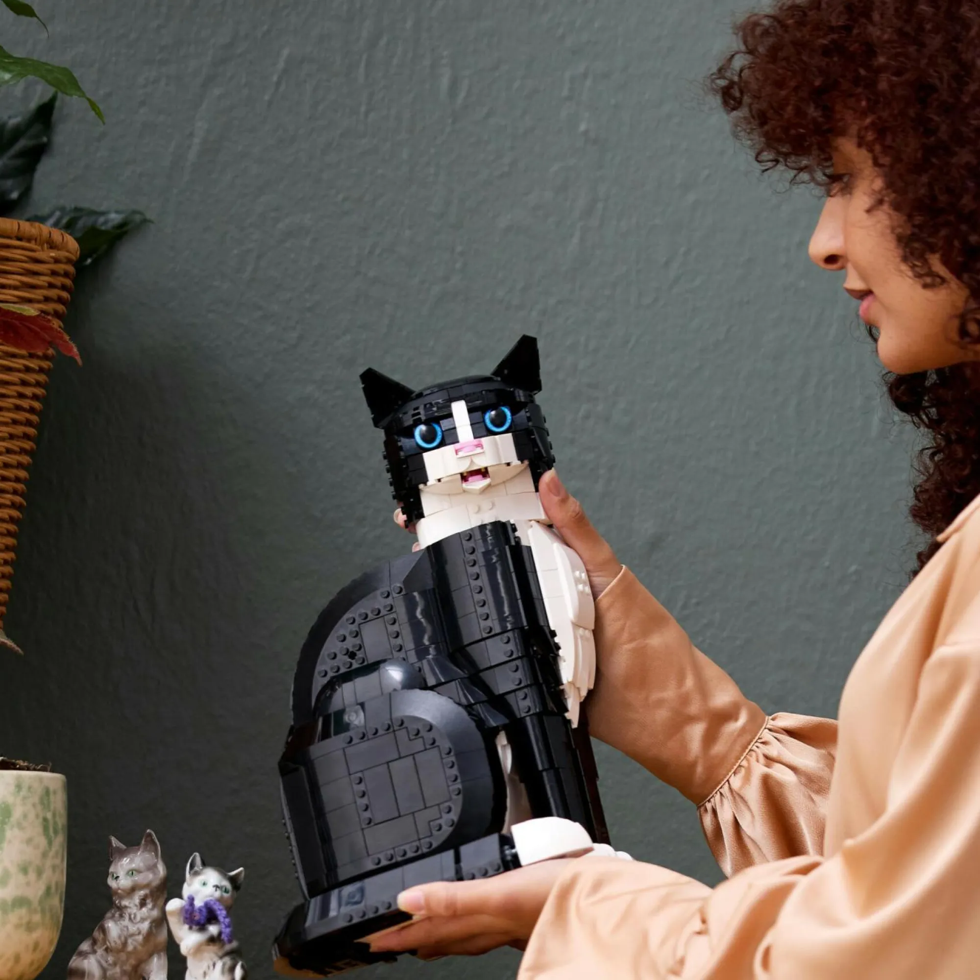Idea regalo per adulti: il modellino da costruire LEGO Ideas per adulti, il Gatto Tuxedo, è una simpatica decorazione felina per la casa, un hobby creativo in mattoncini da realizzare da solo o con gli amici