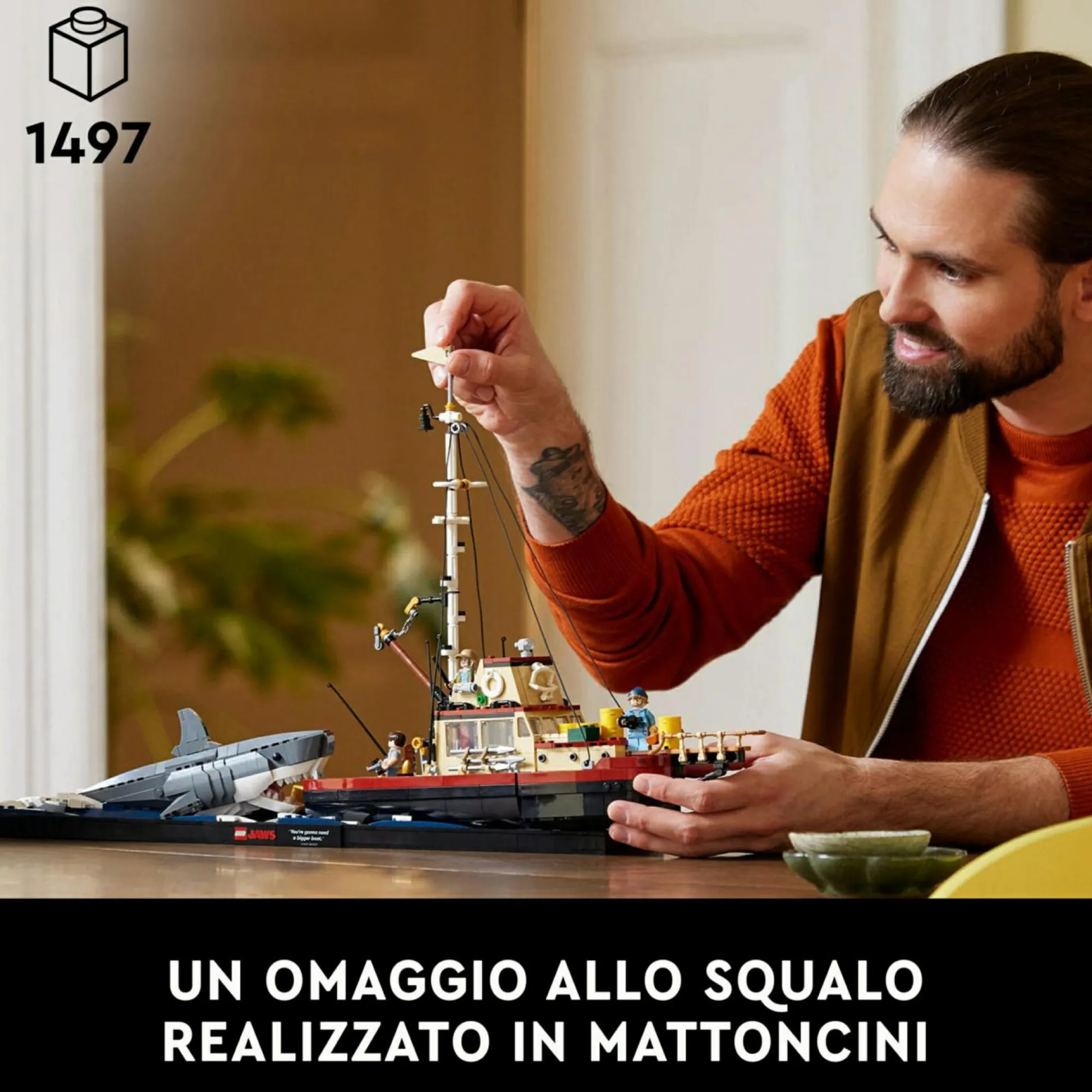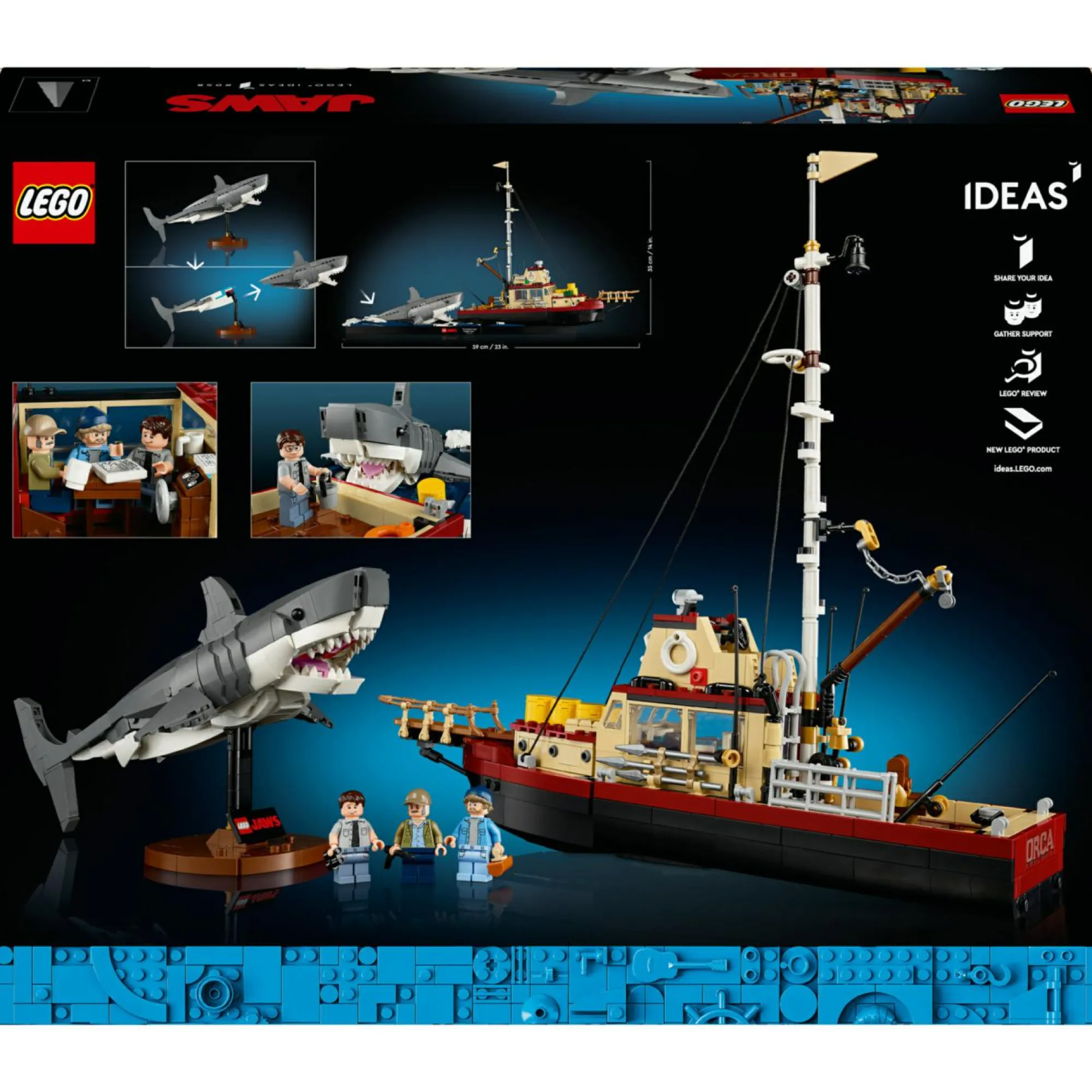 Diorama Lo Squalo LEGO da costruire: rivivi le scene piene di suspense di un grande classico riproducendo tutti i dettagli e le scene di questo famoso film, con il kit di modellismo LEGO Ideas per adulti Lo Squalo con base e barca Orca costruibili
