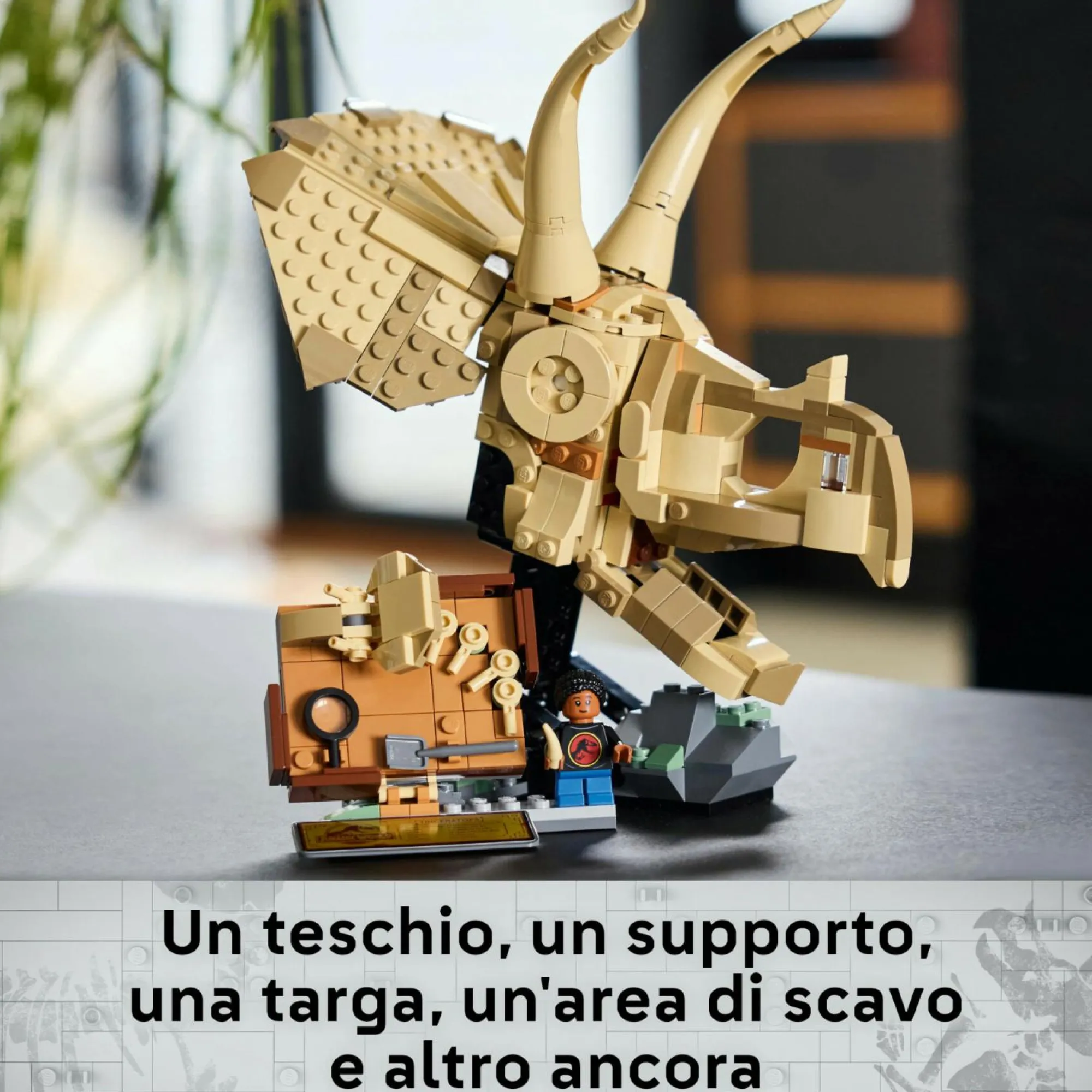 Fossile di dinosauro giocattolo: libera la passione per la storia con il Fossili di Dinosauro: Teschio di Triceratopo, un gioco di ruolo per bambini e bambine da 9 anni per costruire e mettere in mostra un fossile di dinosauro LEGO Jurassic World
