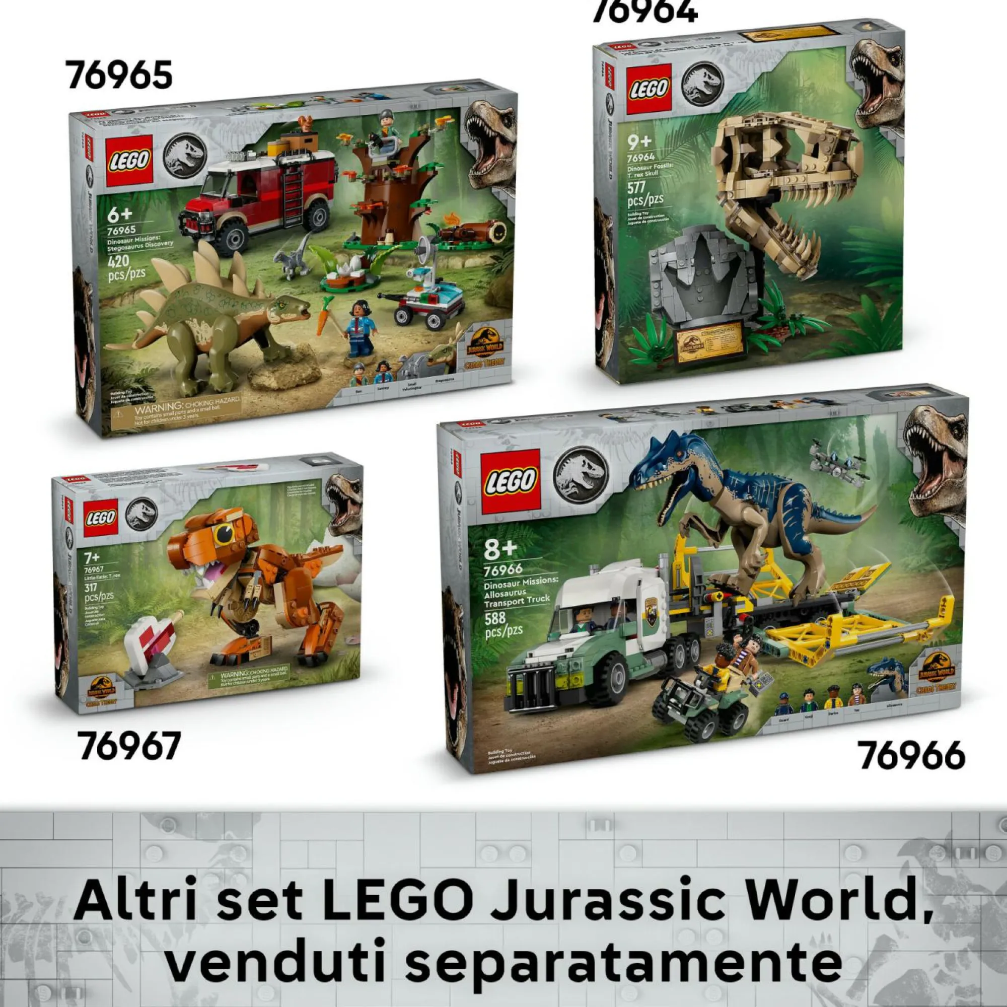 Costruzioni LEGO per bambini con dinosauro: contiene un teschio di Triceratopo giocattolo con supporto, targa informativa, targa del sito di scavo con mini-fossili e attrezzi di scavo, minifigure del Paleontologo Junior LEGO e un pezzo di “ambra”