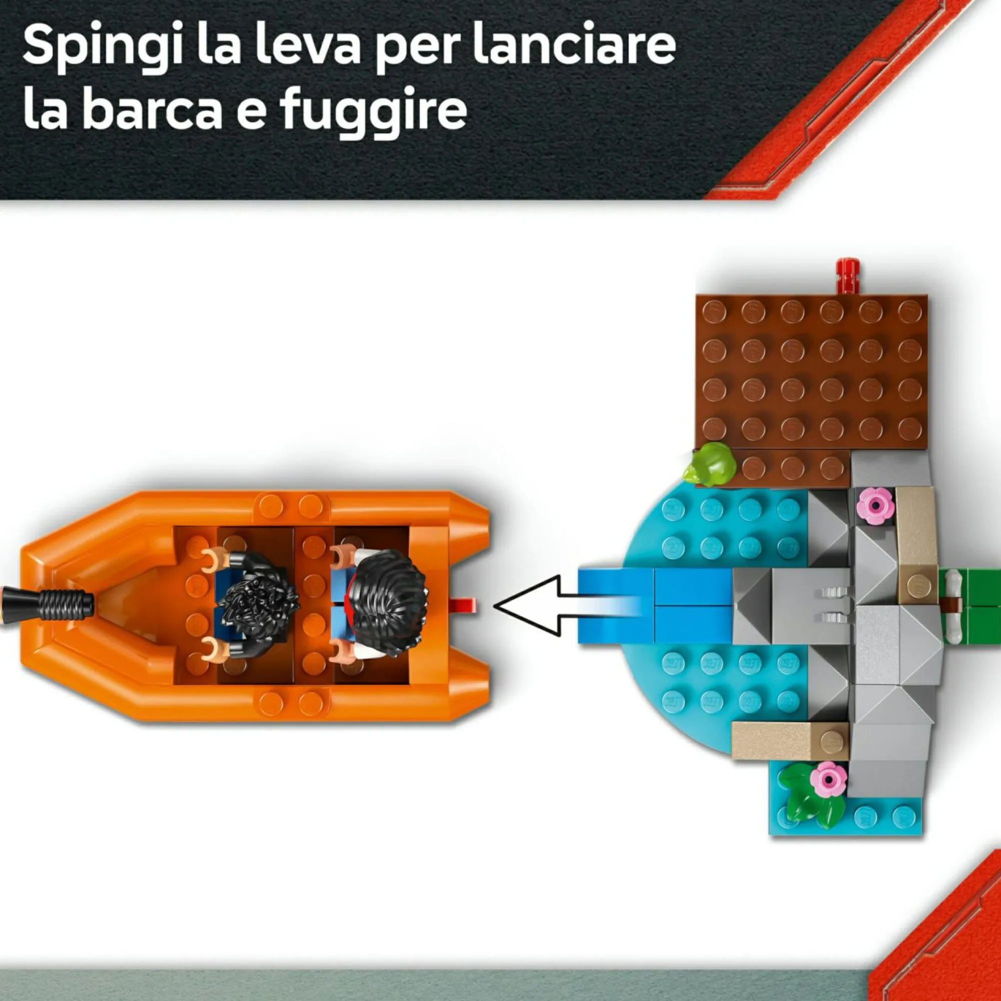 Ricco di dettagli ispirati al film: questo dettagliato giocattolo con dinosauri di Jurassic World – La Rinascita include un capanno con molo e lancia barche, un piccolo gommone per bambini, un ATV e molto altro ancora