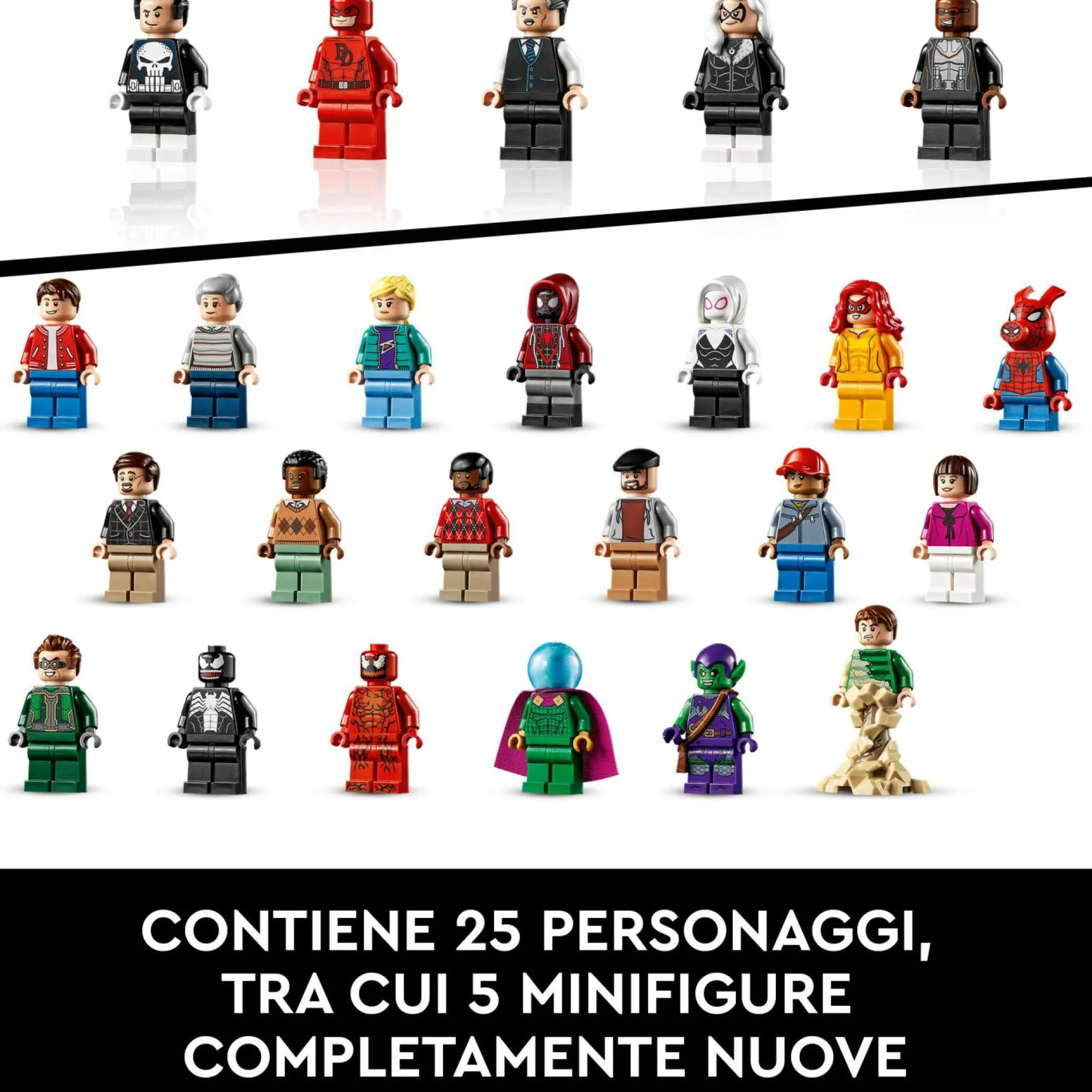 C’è un classico taxi newyorkese all’esterno e un attico con l’ufficio del direttore del Daily Bugle; questo set LEGO da collezione include anche un buggy di Spider-Man
