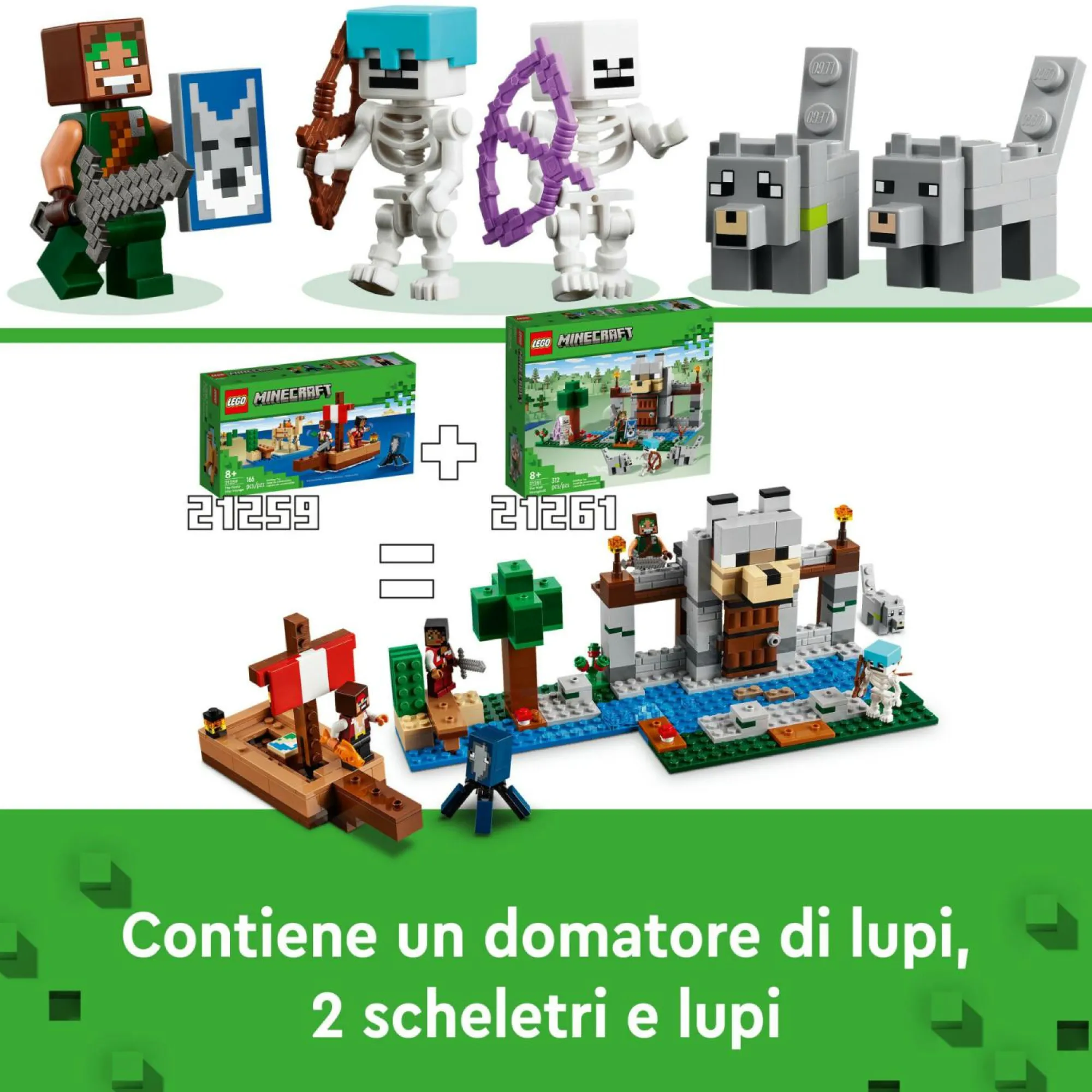 Giochi d’avventura LEGO Minecraft per bambini e bambine da 8 anni in su: con il giocattolo de Il Castello del Lupo LEGO Minecraft da costruire, i fan del videogioco possono divertirsi ad esplorare una fortezza e una foresta con i personaggi inclusi