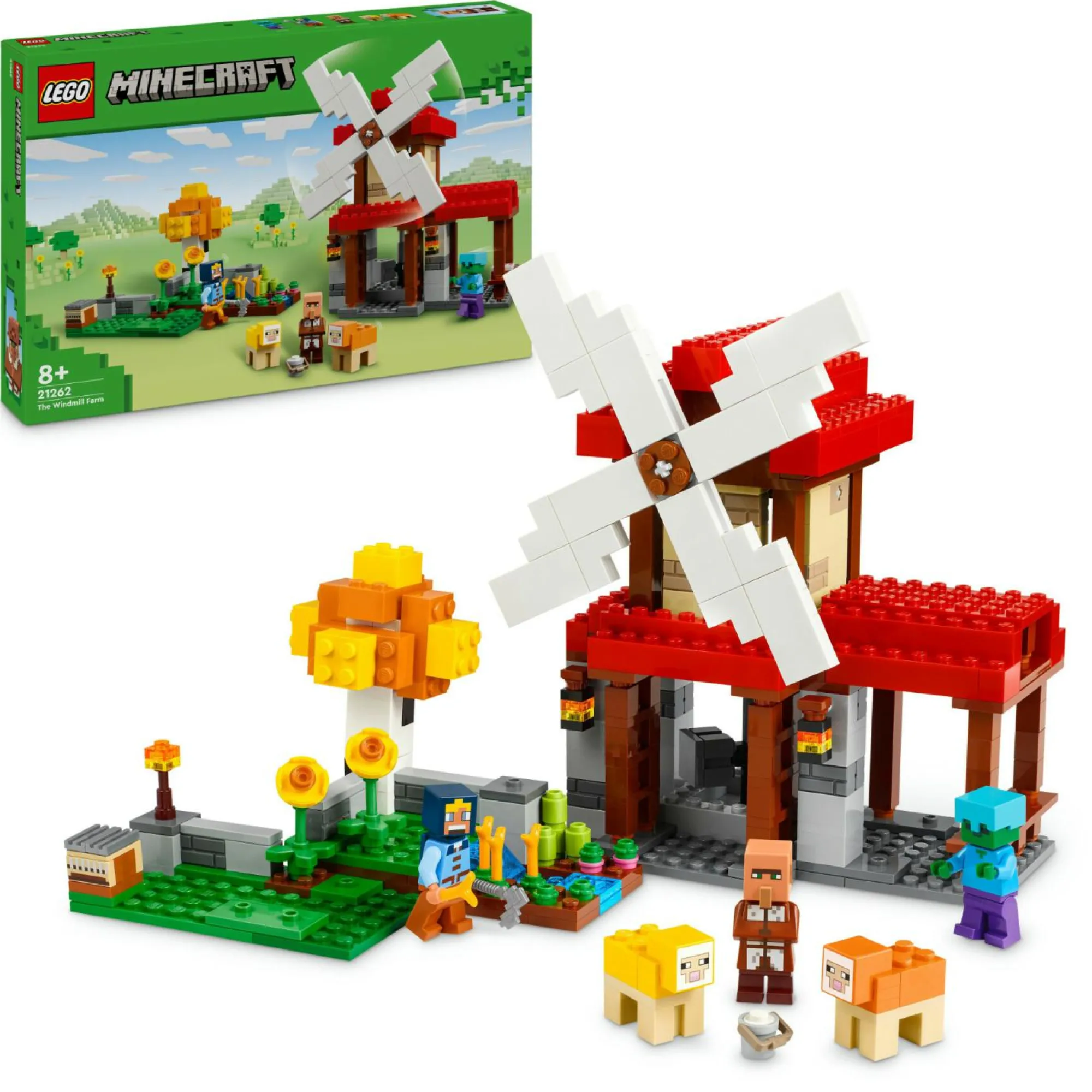 Mulino a vento giocattolo funzionante: questo set include una fattoria giocattolo LEGO con mulino a vento da costruire, più 2 pecore, uno zombie LEGO Minecraft, e i personaggi del mugnaio e del villico pastore