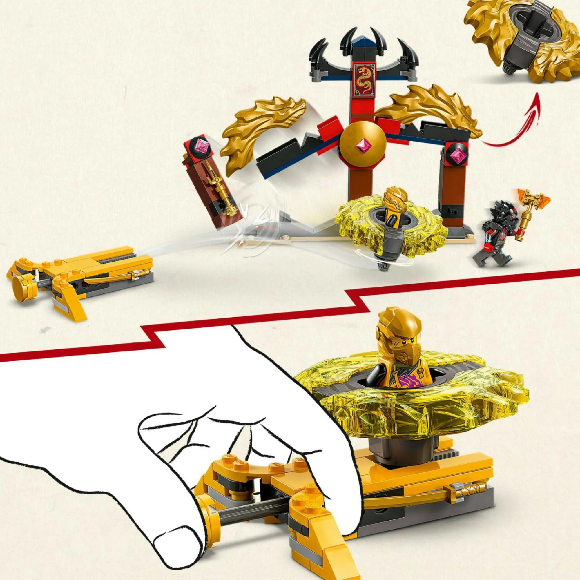 2 velocissimi spinner trottola giocattolo: i giovani possono posizionare gli spinner del drago giocattolo spinjitzu di Arin e di Ras, nei rispettivi lanciatori per farli partire a tutta velocità in emozionanti battaglie rotanti