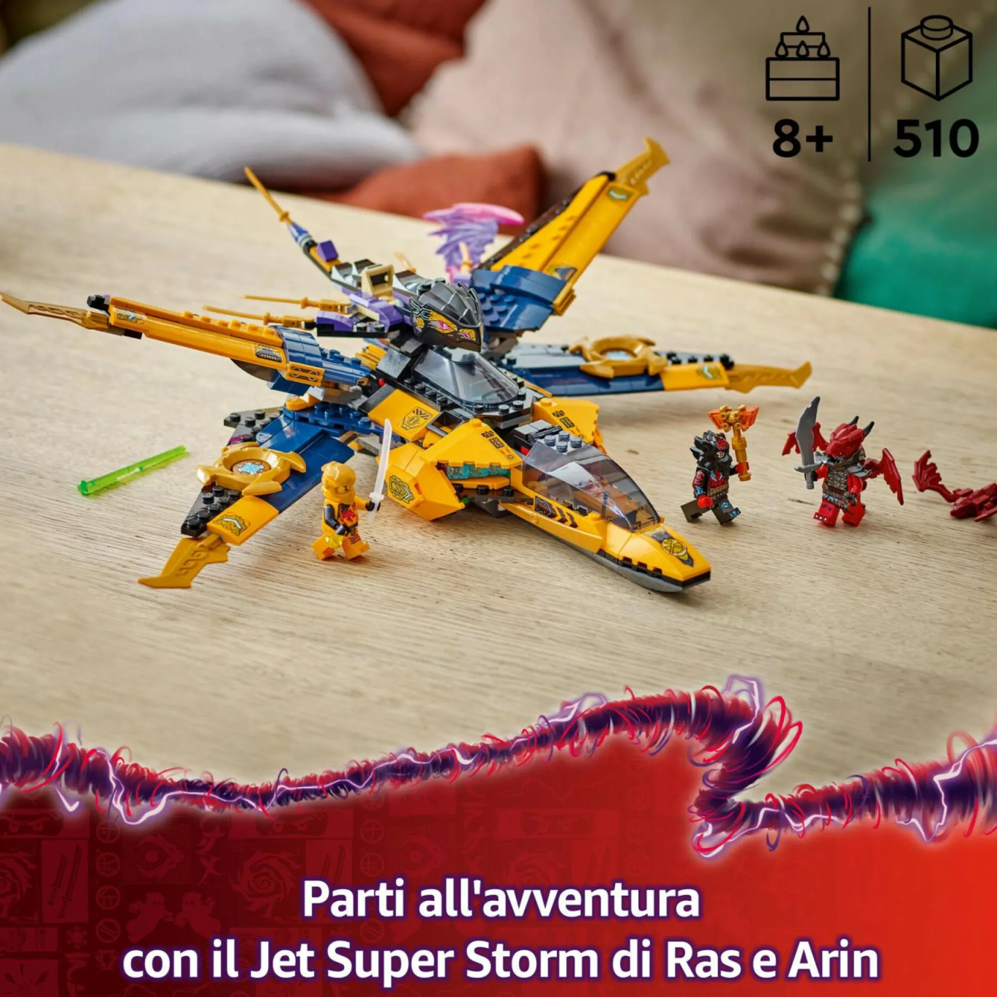 Ricco di funzionalità: il l’aereo LEGO NINJAGO Jet Super Storm di Ras e Arin, è dotato di 2 shooter a molla, di ali regolabili, di lame della tempesta vorticanti e di lame e motori rimovibili da utilizzare come armi ninja