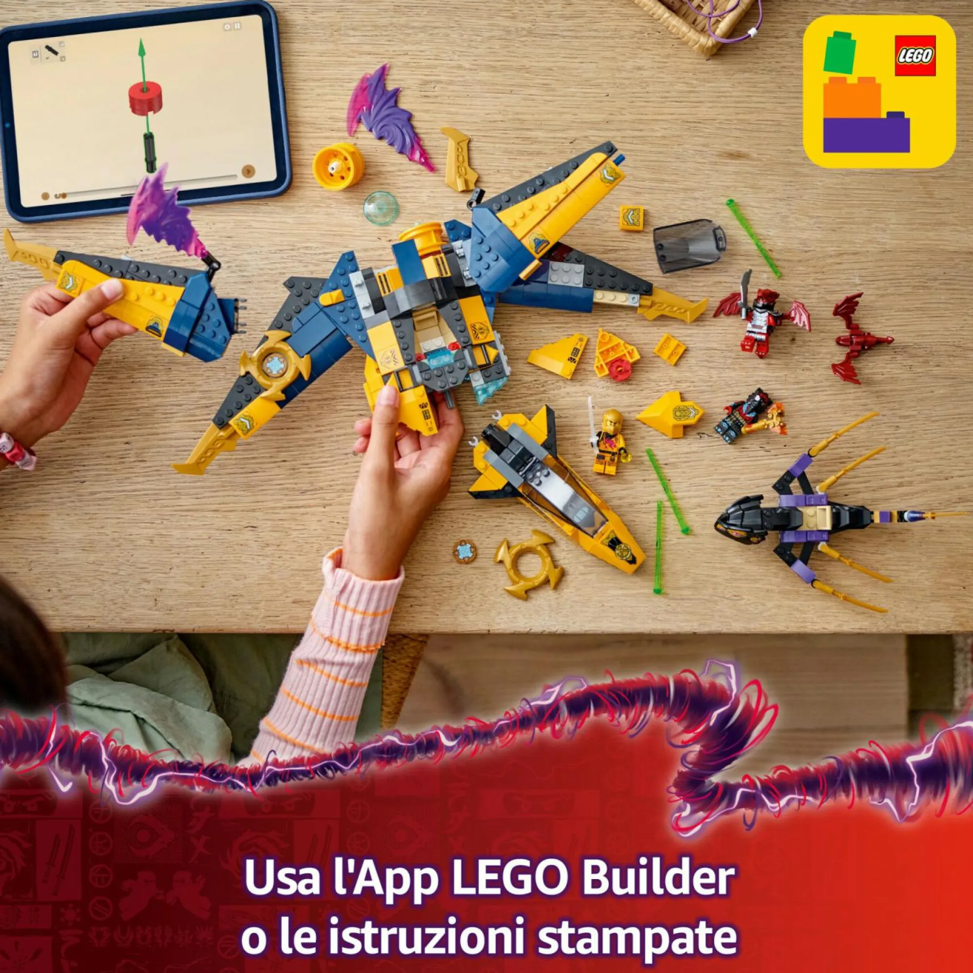 Aereo giocattolo LEGO NINJAGO: questo gioco per bambini e bambine da 8 anni in su, il Jet Super Storm di Ras e Arin, permette di ricreare le azioni aeree della stagione 3 del programma TV LEGO NINJAGO La rivolta dei draghi