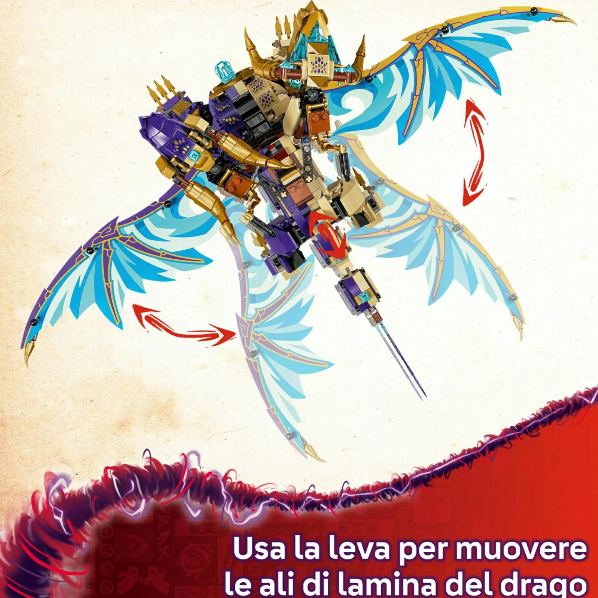 Figure di drago LEGO NINJAGO snodabile: questo giocattolo NINJAGO d’azione è dotato di coda, gambe, piedi, testa, collo, mascella e artigli snodabili, oltre che di uno shooter nel petto e di ali azionabili tramite una leva sul dorso del Drago NINJAGO