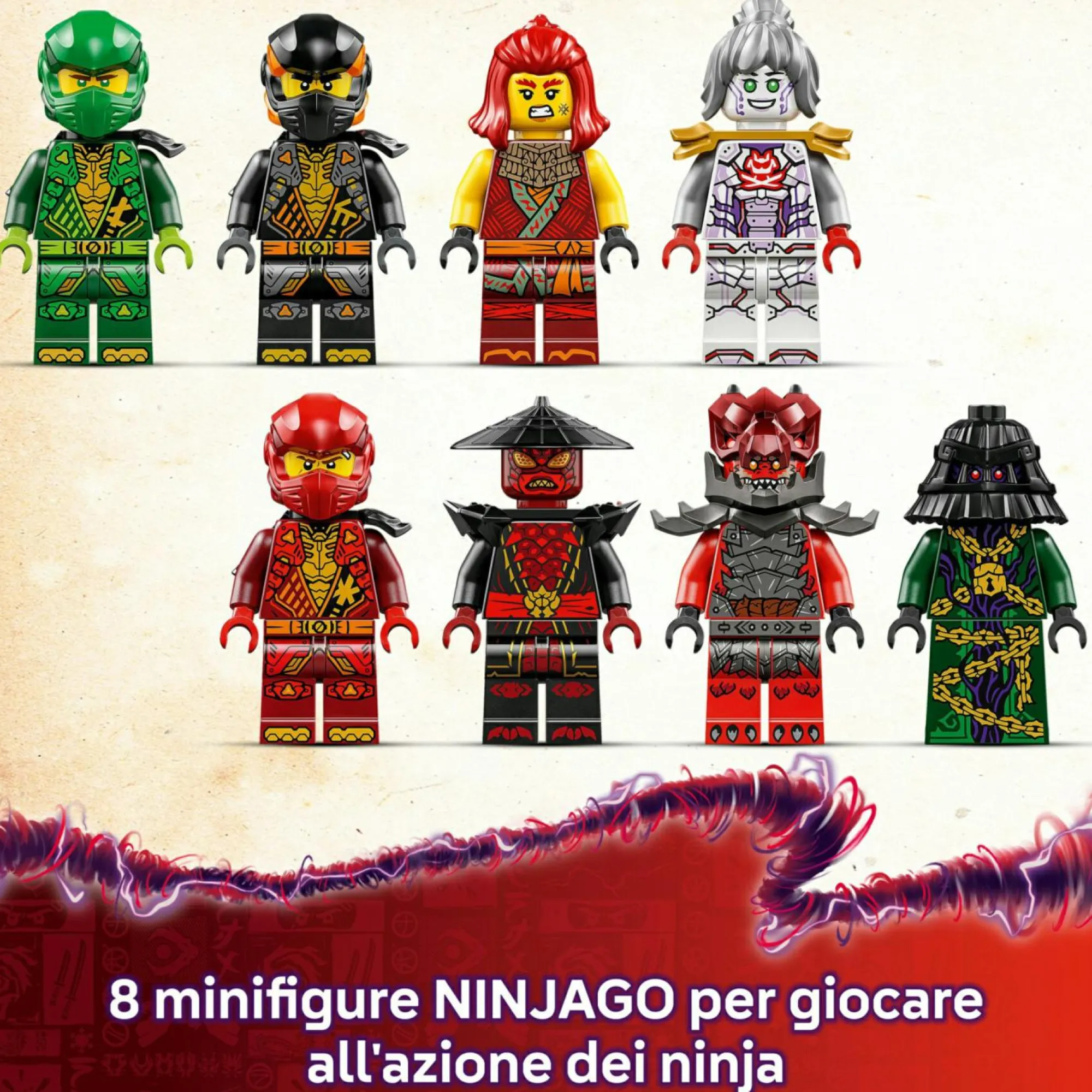 8 minifigure NINJAGO incluse: questo set di costruzioni LEGO contiene i personaggi guerrieri ninja di Lloyd, Cole, Wyldfyre e Kai e il loro alleato Pixal, oltre ai cattivi Drix, Zarkt e un Guerriero dragoniano