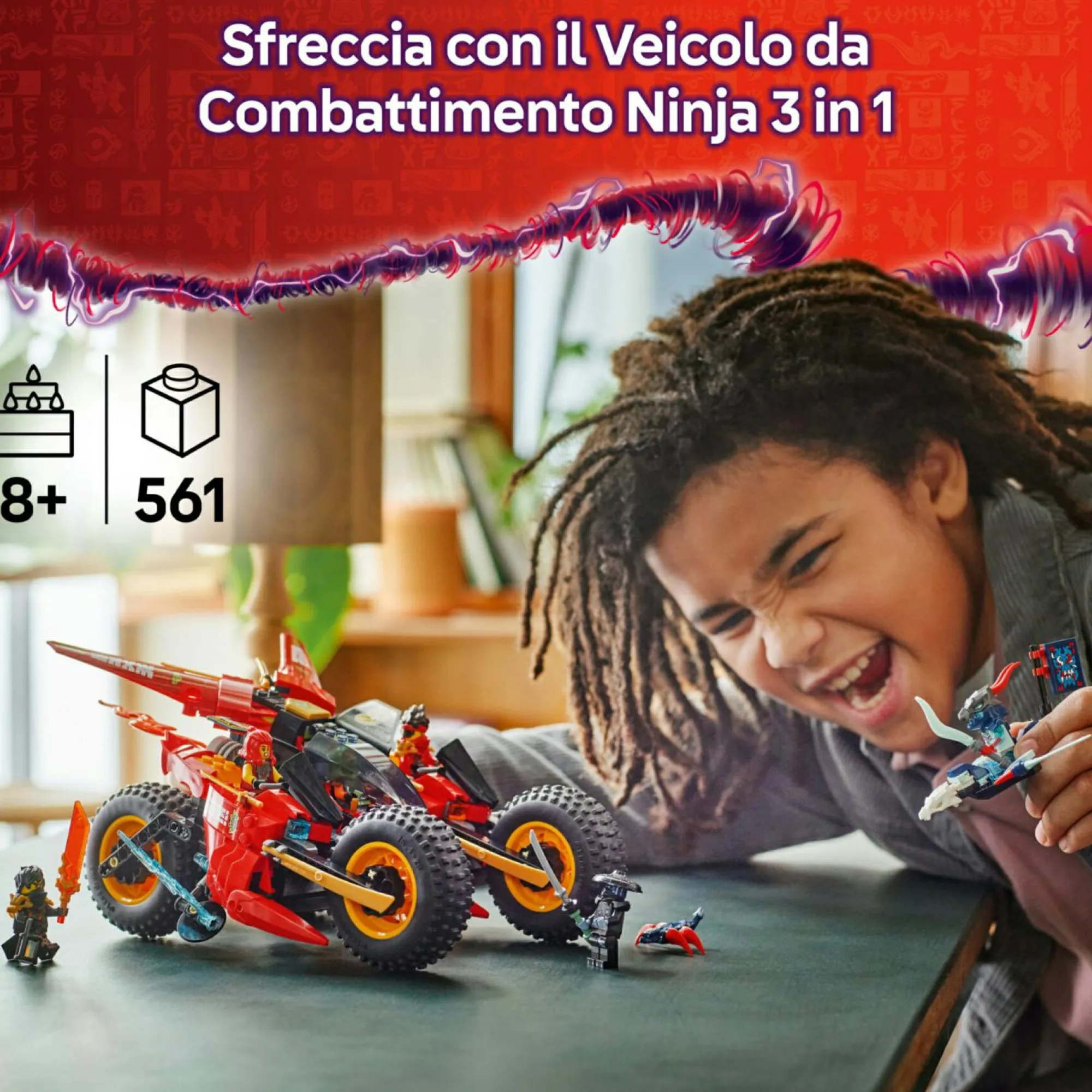 Veicolo LEGO NINJAGO da costruire: il set Veicolo da Combattimento Ninja è un gioco per bambini e bambine da 8 anni in su, pensato per far rivivere ai giovani ninja le battaglie della stagione 3 del programma TV NINJAGO La rivolta dei draghi