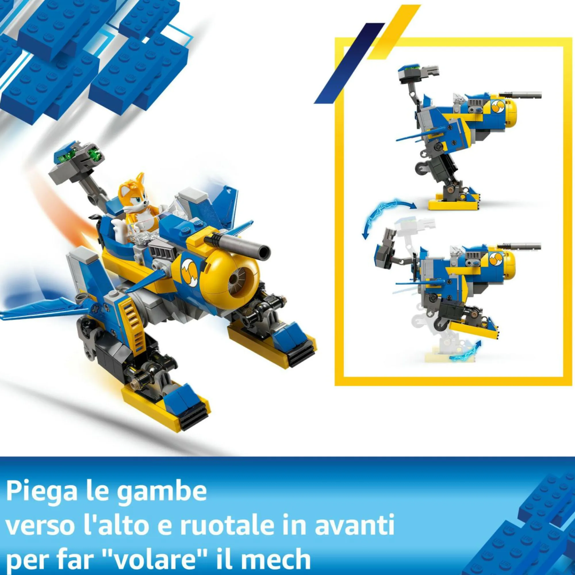 Robot giocattolo trasformabile: questo set LEGO dà il via all’azione e al divertimento; il mech di Tails può camminare e quando le gambe vengono piegate e ruotate in avanti, può essere posizionato in modalità ‘volo’