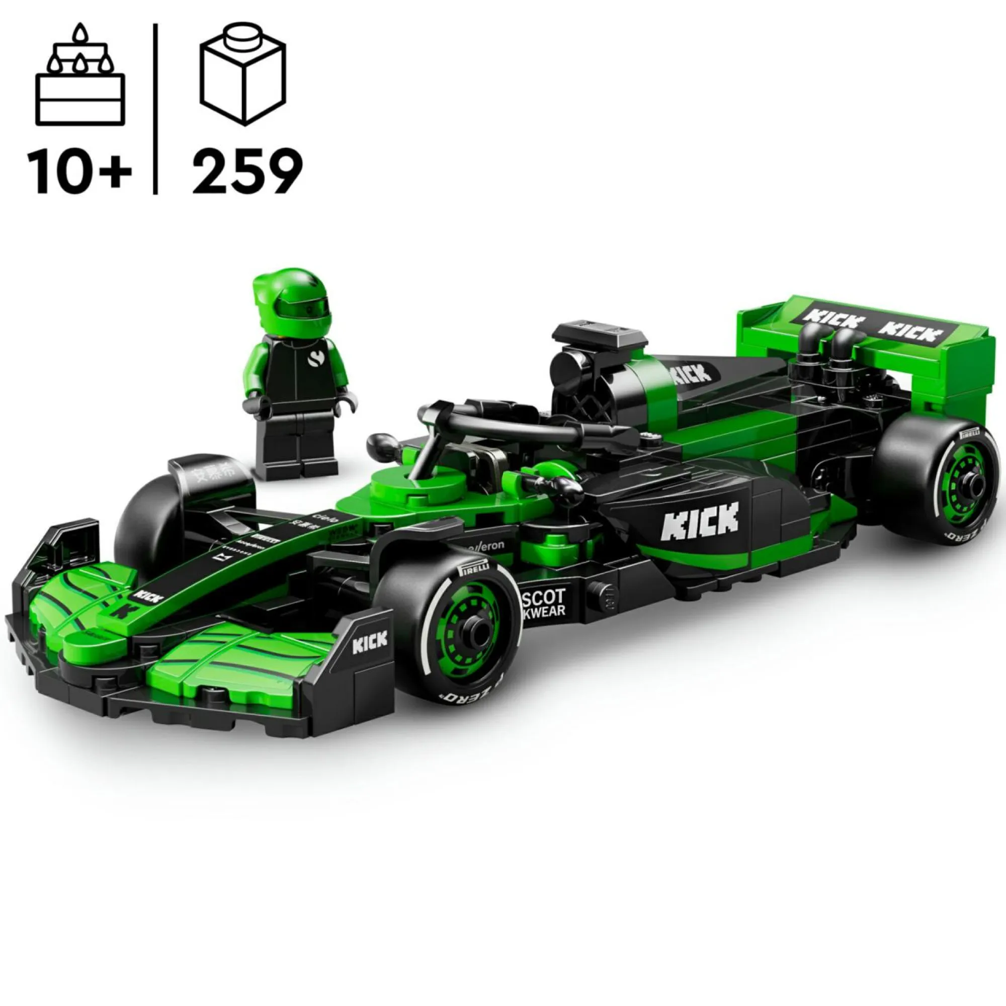 Auto LEGO con 1 minifigure: è inclusa una minifigure con tuta del Team KICK Sauber F1 e casco; il pilota è posizionabile all’interno del modellino da costruire di auto F1, pronto a ricreare emozionanti azioni corse in pista