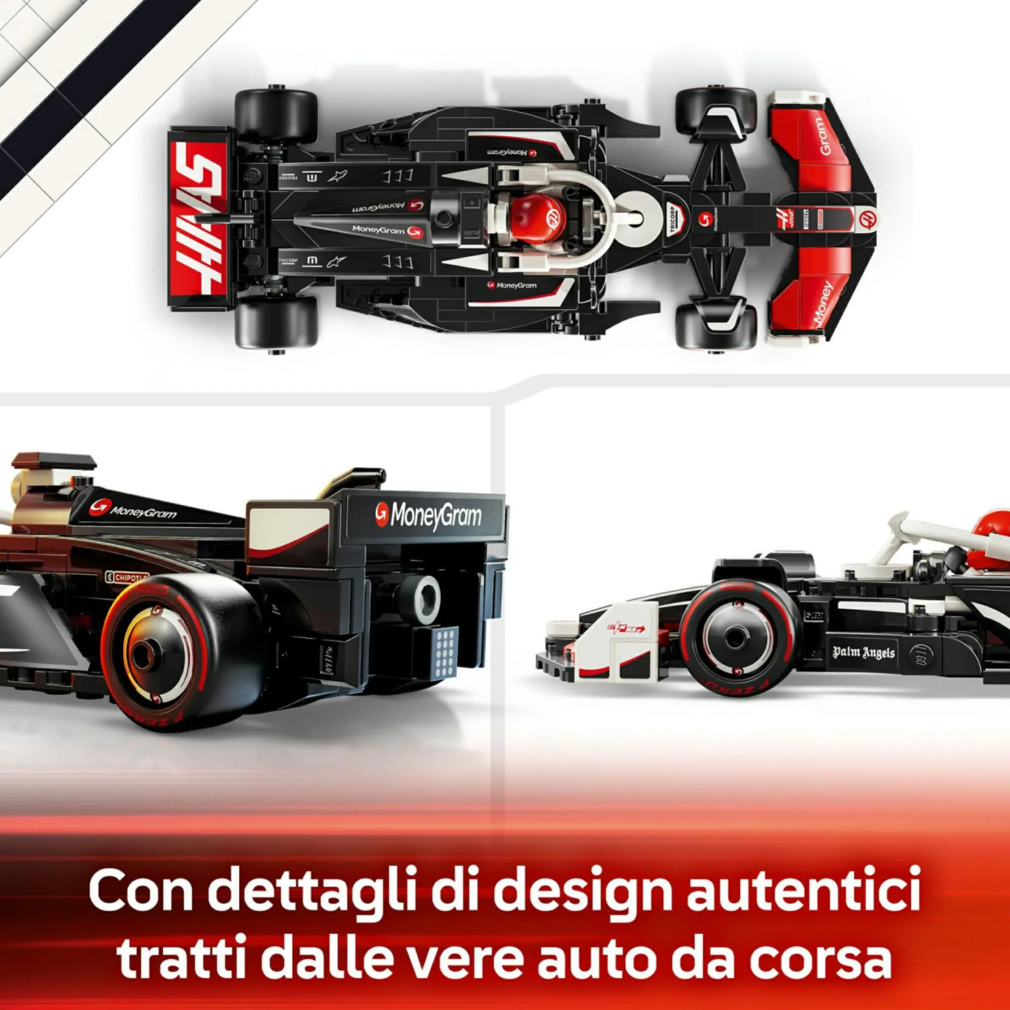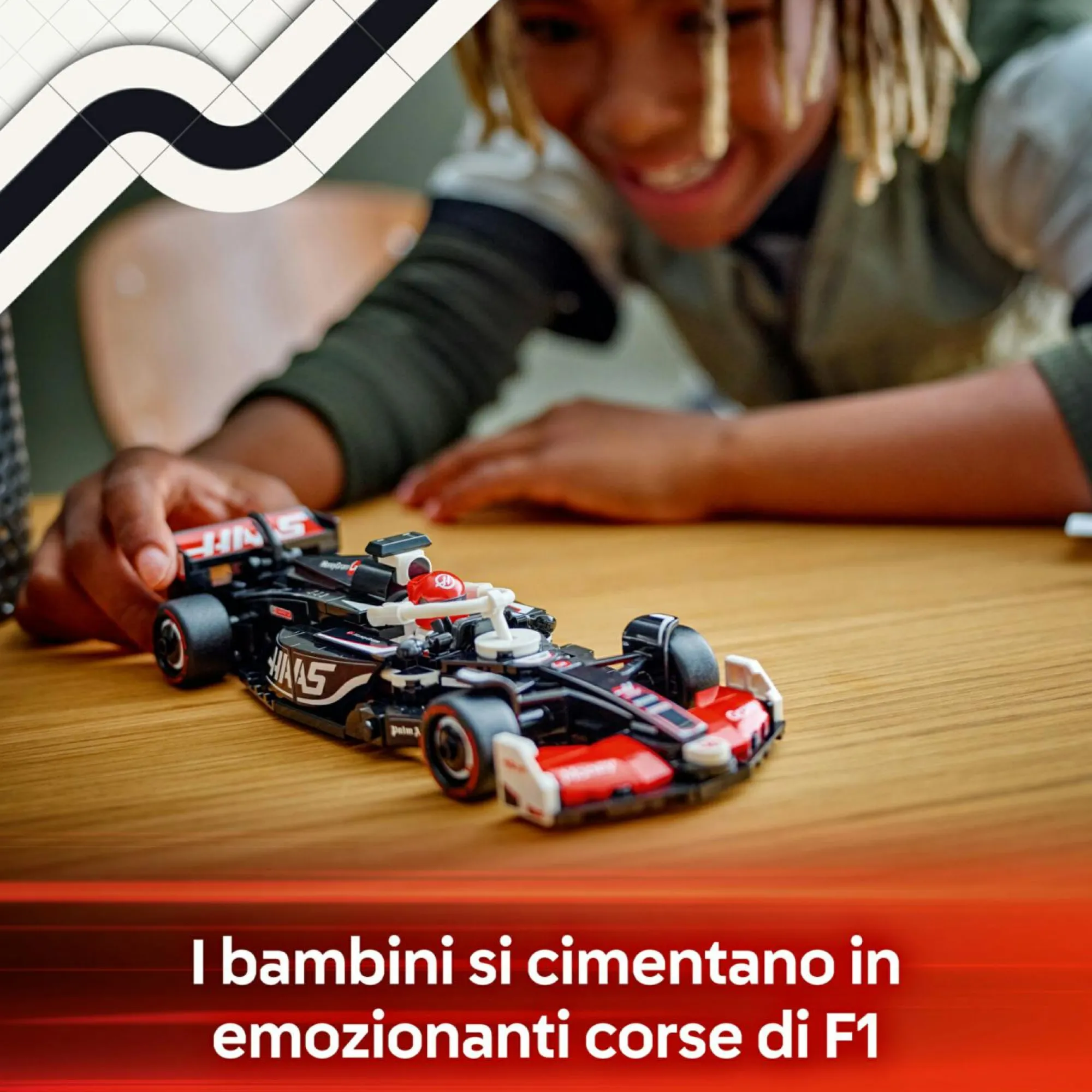Include 1 minifigure alla guida dell’auto LEGO: il set comprende una minifigure del pilota, con tuta Haas e casco, che i piccoli possono posizionare nell’abitacolo del veicolo giocattolo, per ricreare sfide a tutta velocità