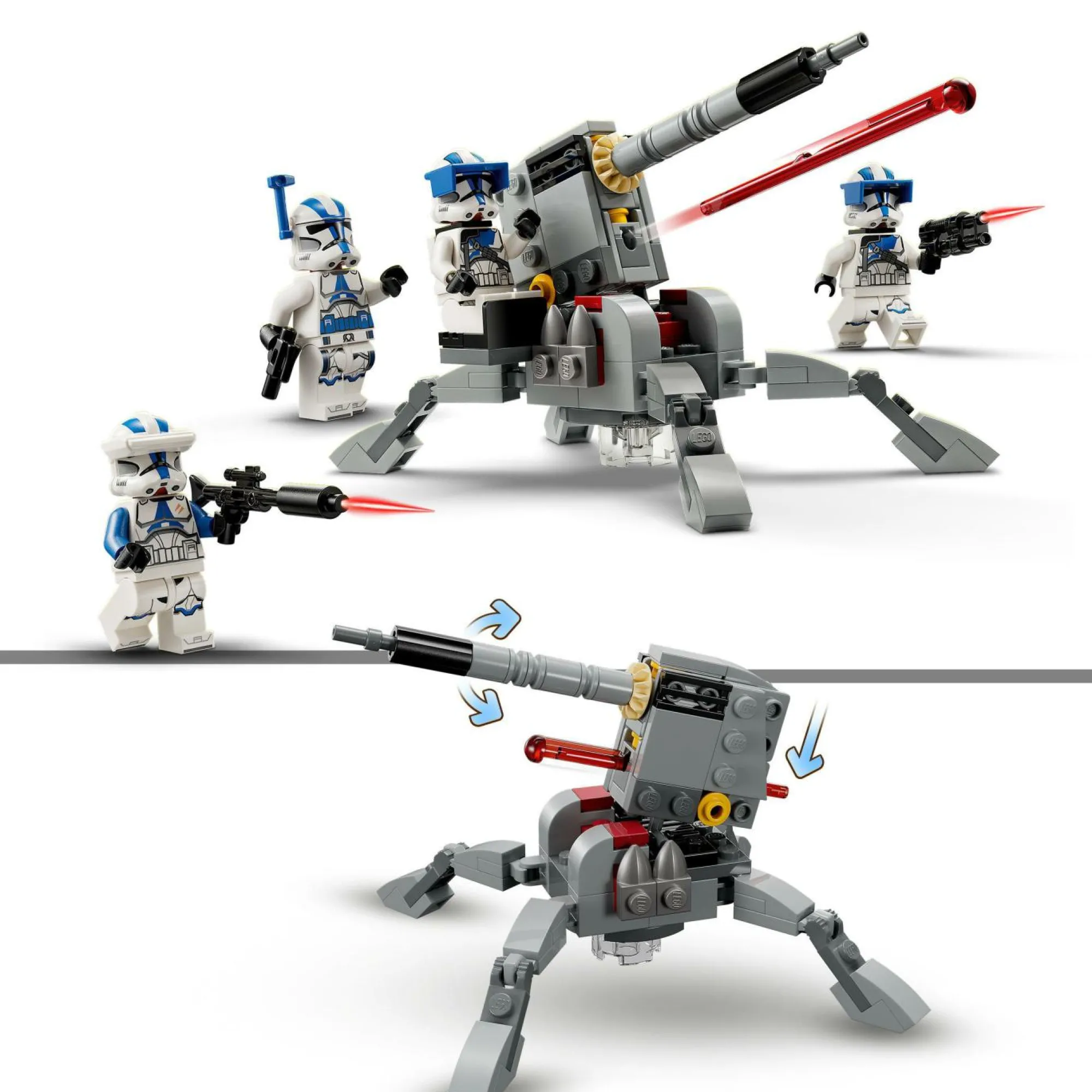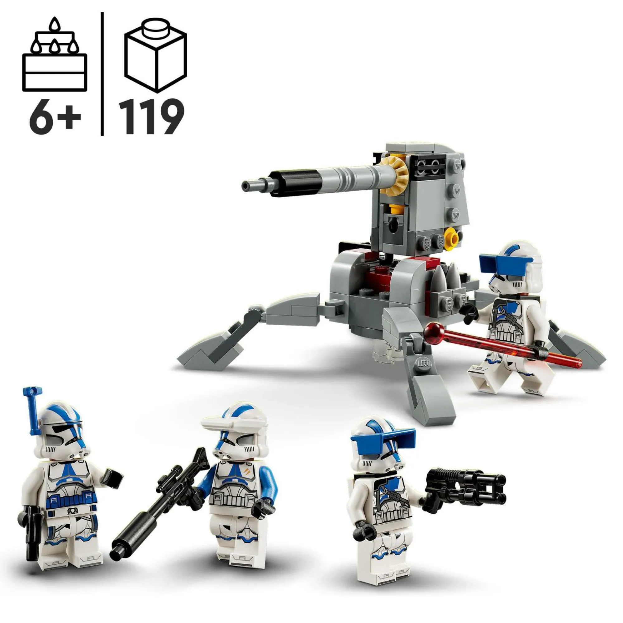 I bambini dai 6 anni in su e i fan di Star Wars si divertiranno a ricreare le scene di The Clone Wars, costruendo il proprio squadrone di cloni con 4 minifigure LEGO, armi e un cannone anticarro AV-7