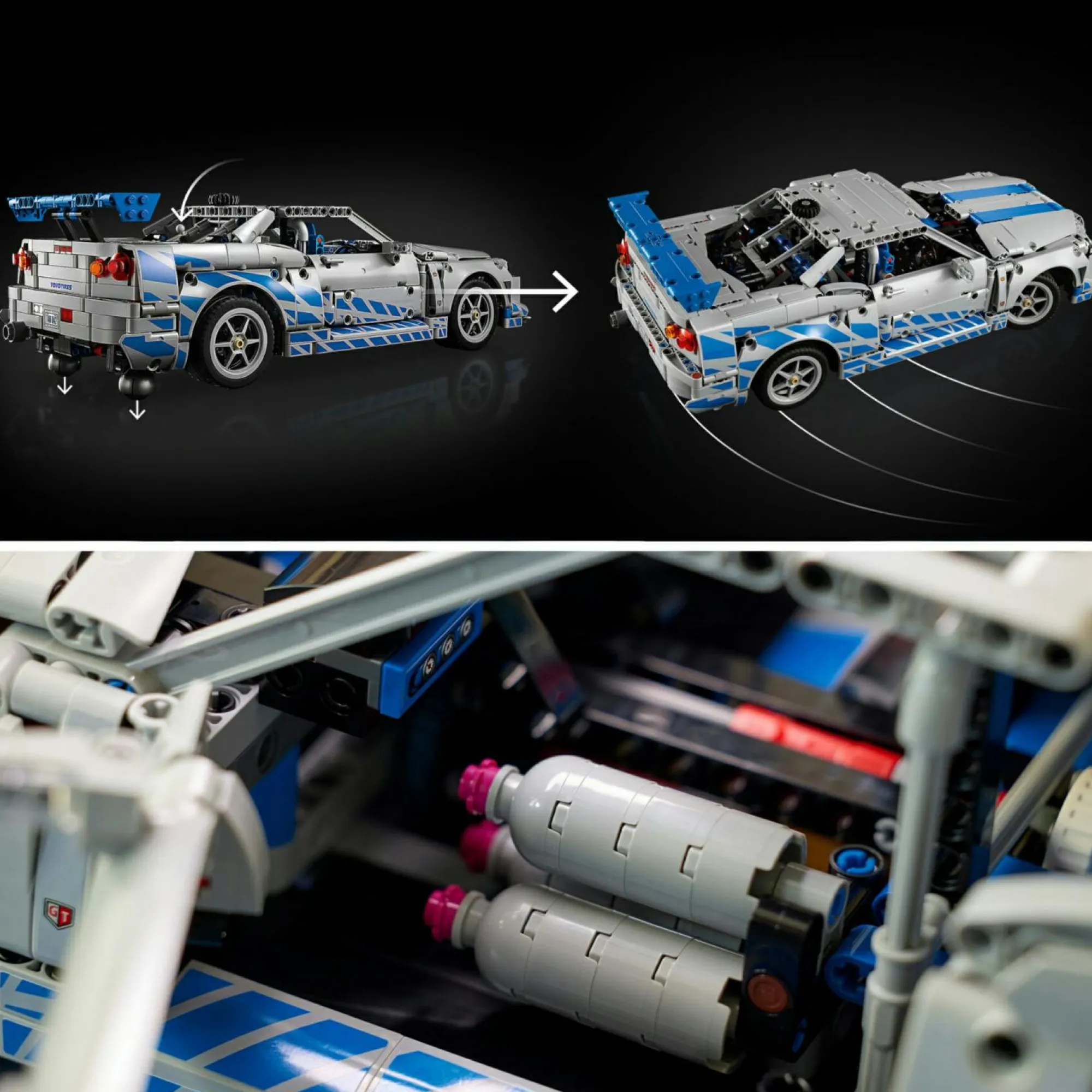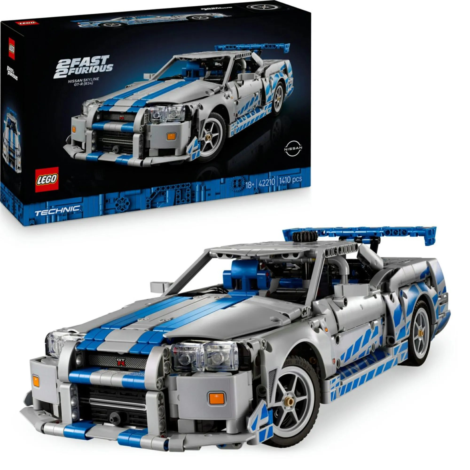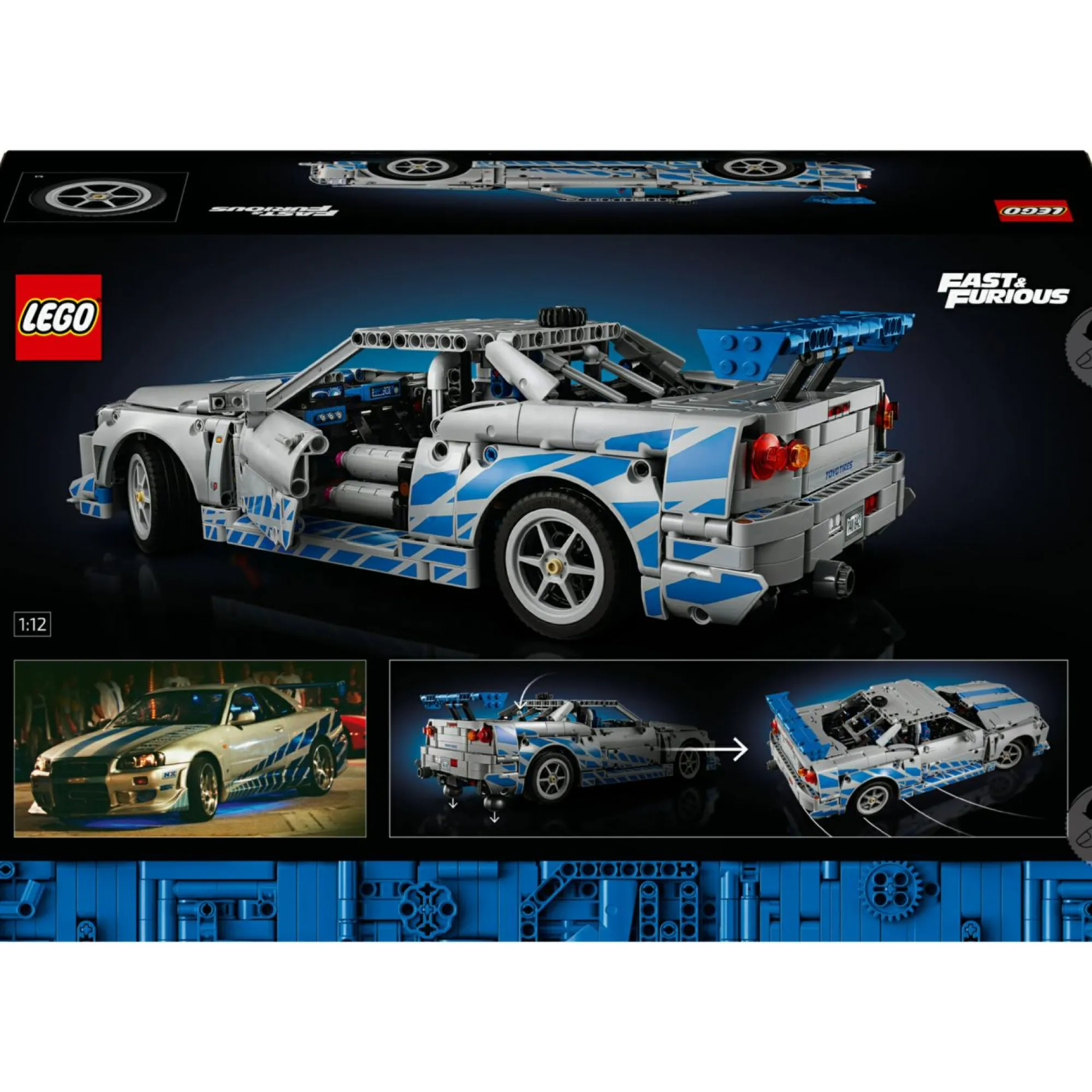 Modello di auto LEGO Technic per adulti: costruisci il set Auto Nissan Skyline GT-R (R34) 2 Fast 2 Furious LEGO Technic, e scopri la funzione di derapata di questa macchina LEGO, per ricreare le scene dei classici film di Fast & Furious