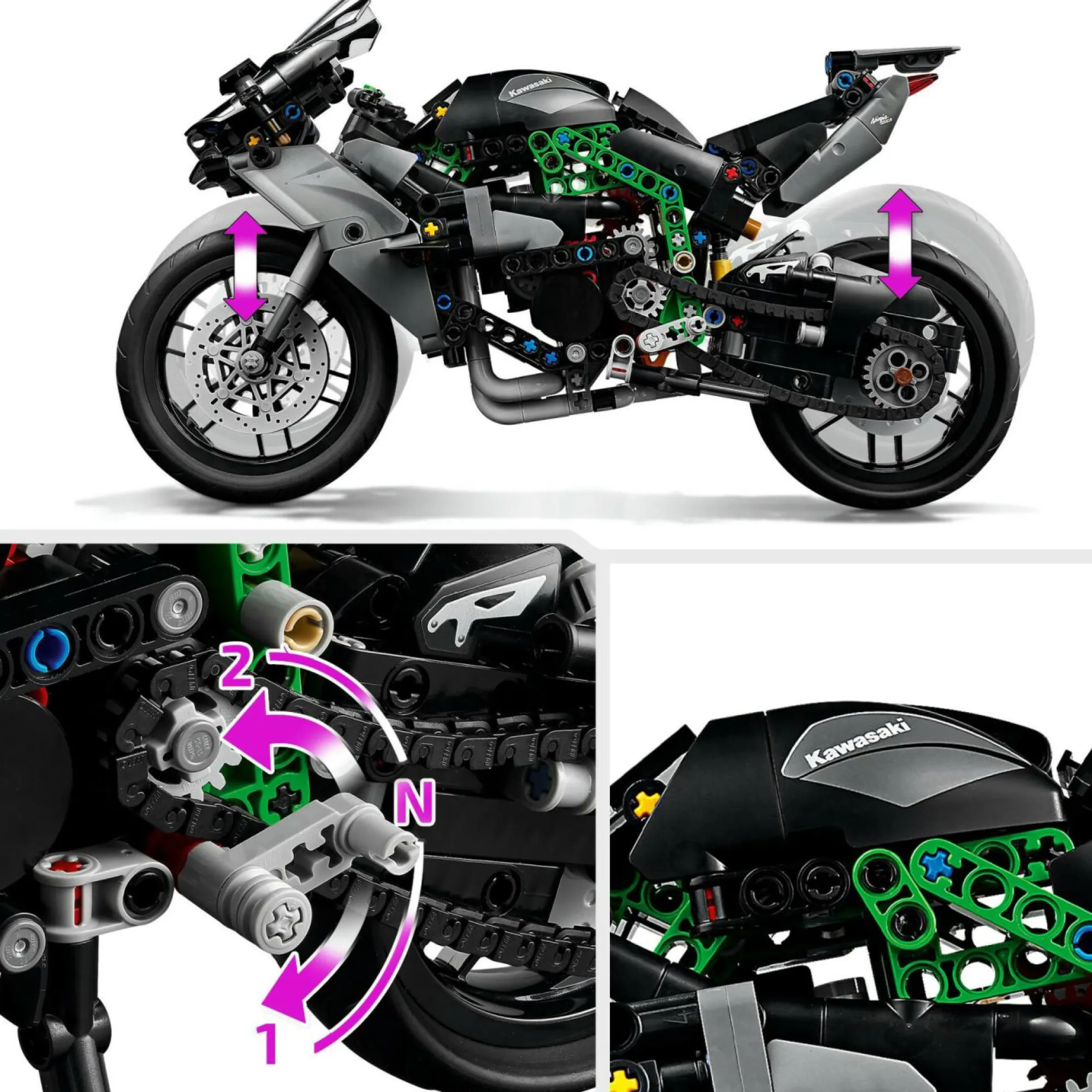 Moto Giocattolo per bambini e bambine da 10 anni in su: il set di costruzioni per bambini la Motocicletta Kawasaki Ninja H2R LEGO Technic, è ricco di dettagli e caratteristiche originali, ed offre ai piccoli un gratificante progetto di costruzione