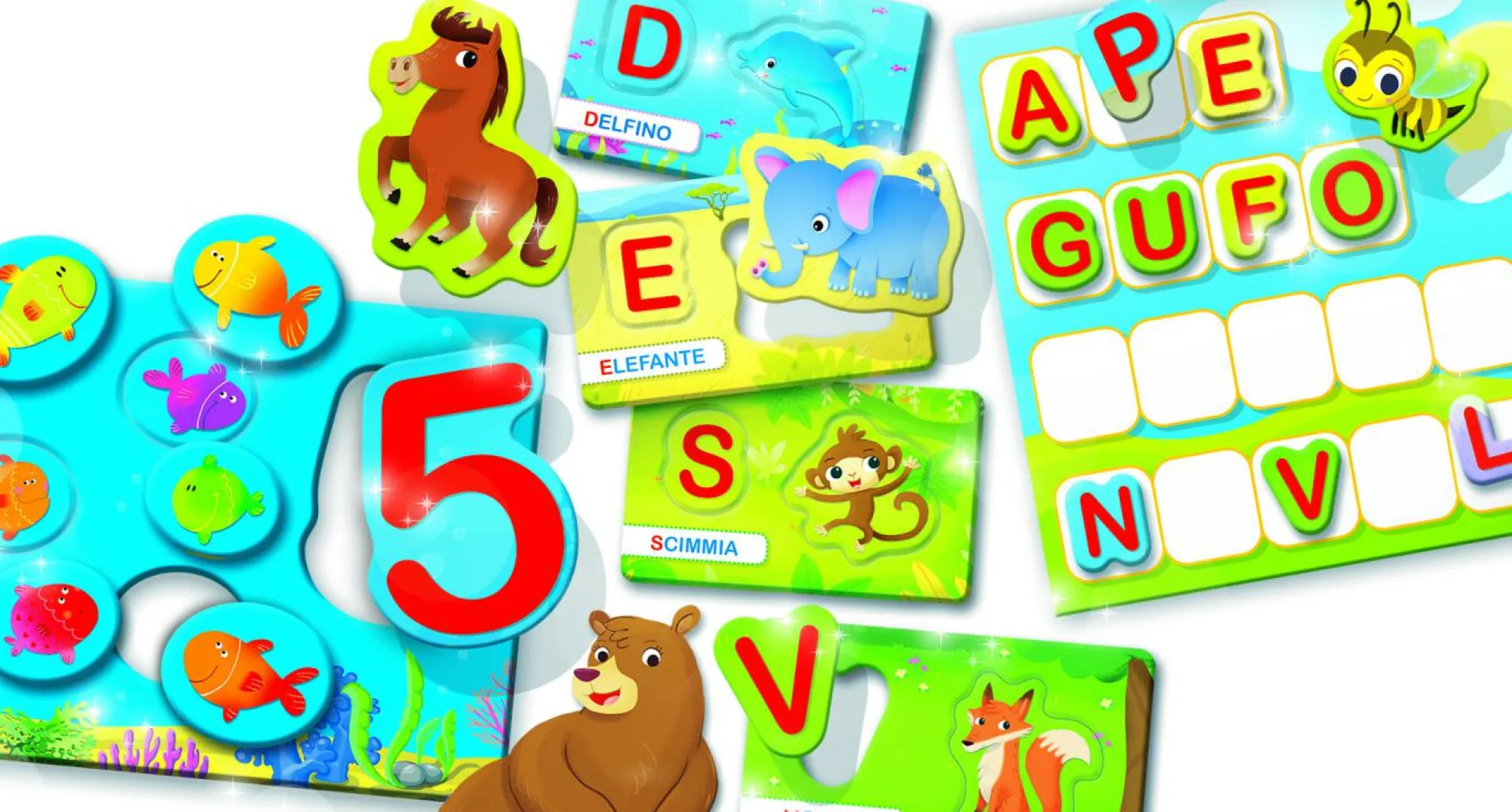 Un kit davvero completo per imparare l’alfabeto, le parole e i numeri in età prescolare. Tutto il materiale a disposizione è ambientato nel fantastico mondo degli animali. In compagnia di tanti cuccioli, il bambino potrà imparare tantissime nuove parole e avvicinarsi al concetto di numeri e quantità.