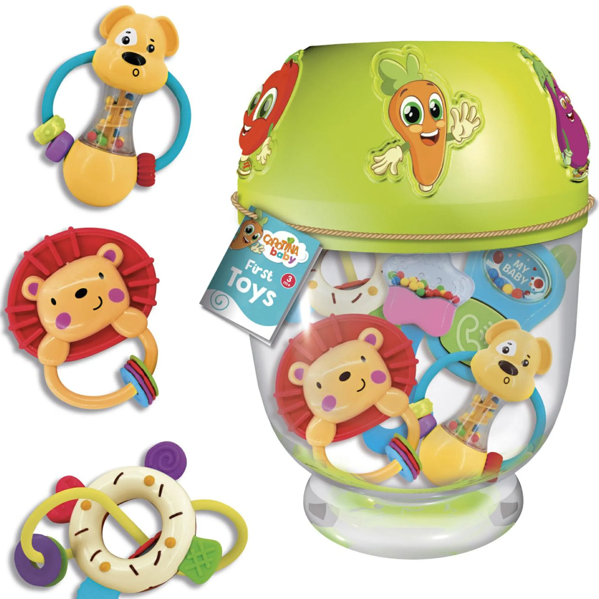 Sonagli – Giochi da dentizione – 5 giochi sensoriali – Esclusivo packaging barattolo