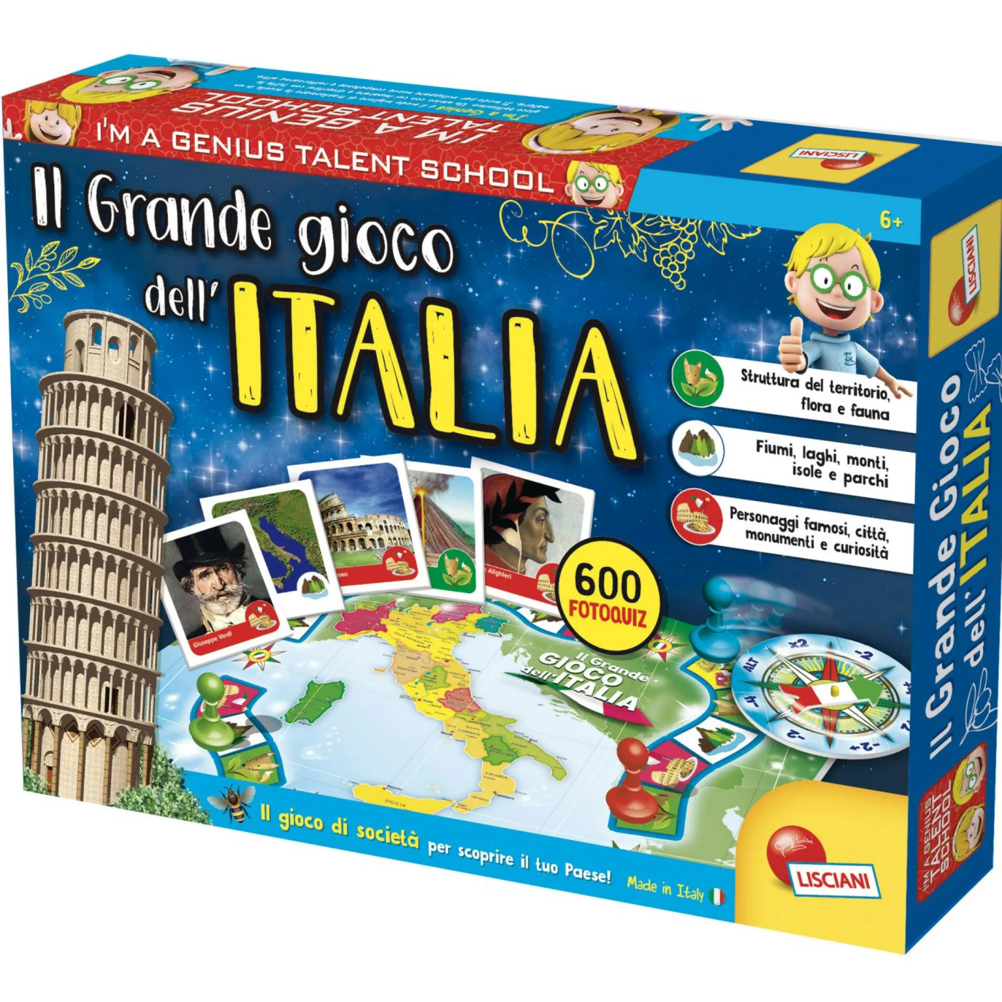 “2-4 giocatori – Tanti quiz fotografici – Tante scoperte sul nostro Paese! – Geografia, regioni e capoluoghi Storia e personaggi famosi – Flora e fauna – Tradizioni e bellezze d’Italia”