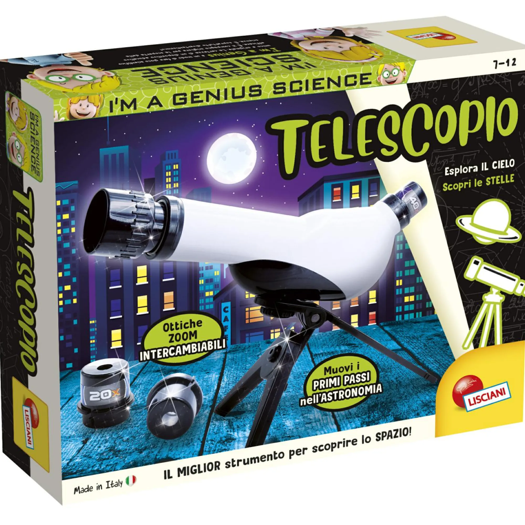 telescopio, ottiche intercambiabili, treppiedi, poster, manuale illustrato