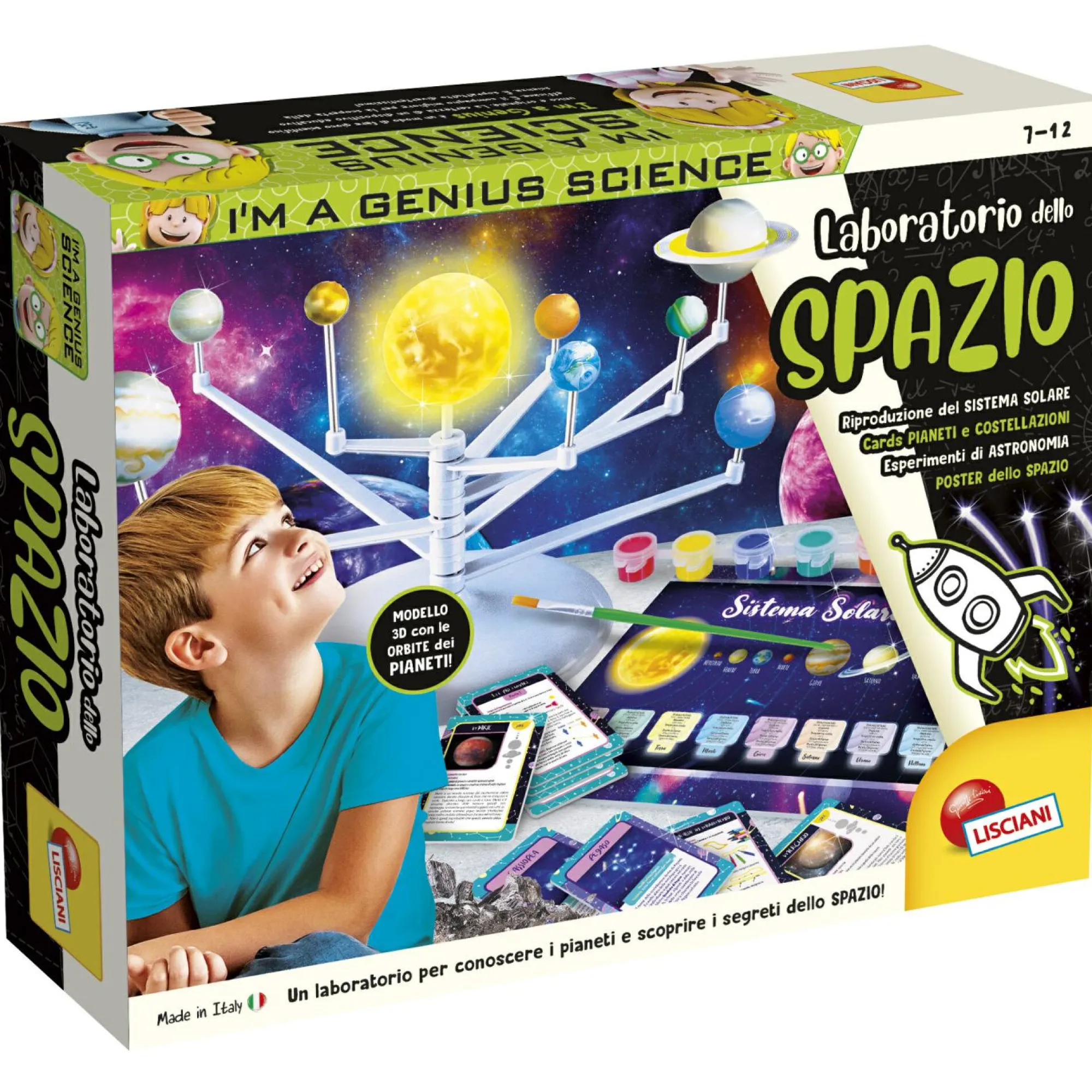 Modellino sistema solare da costruire, pennello, colori a tempera, cards astronomia, poster, manuale illustrato