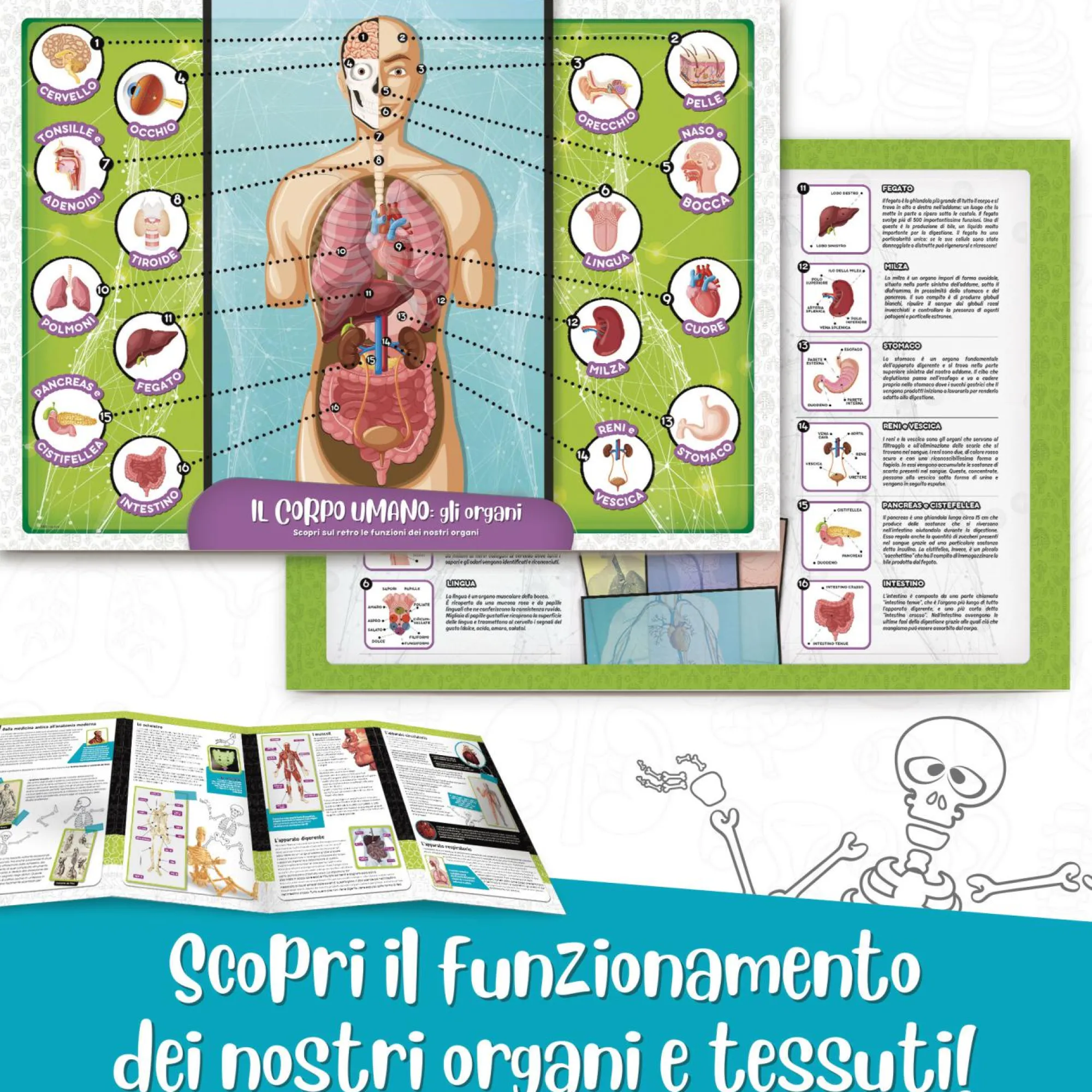 Scheletro umano da costruire, quattro modelli anatomici, manuale illustrato