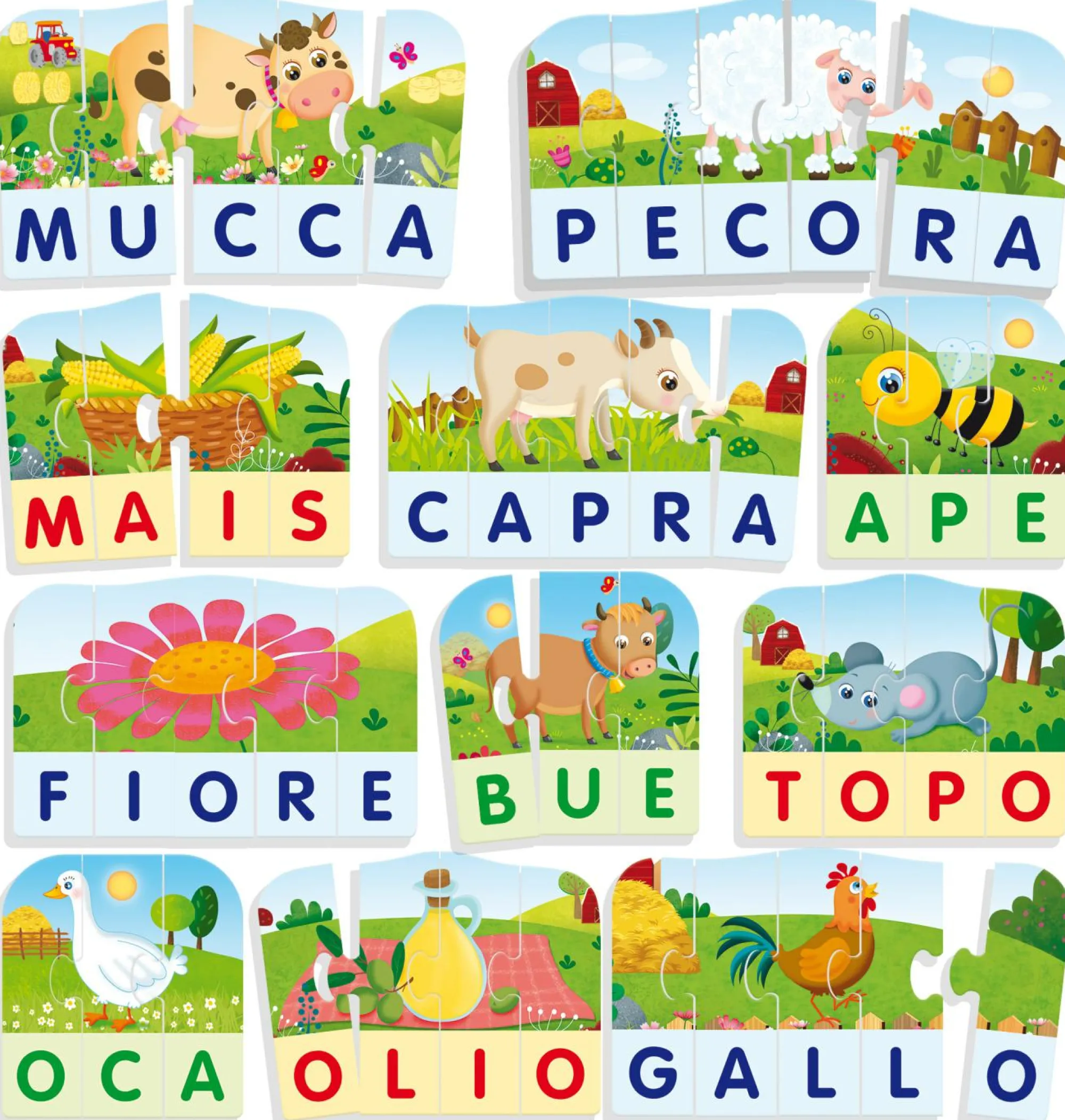Impara le parole della fattoria! – 60 tessere autocorrettive – Made in Italy