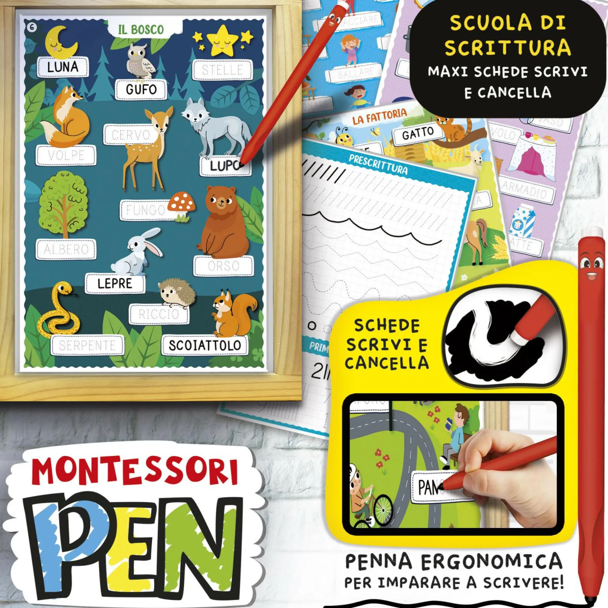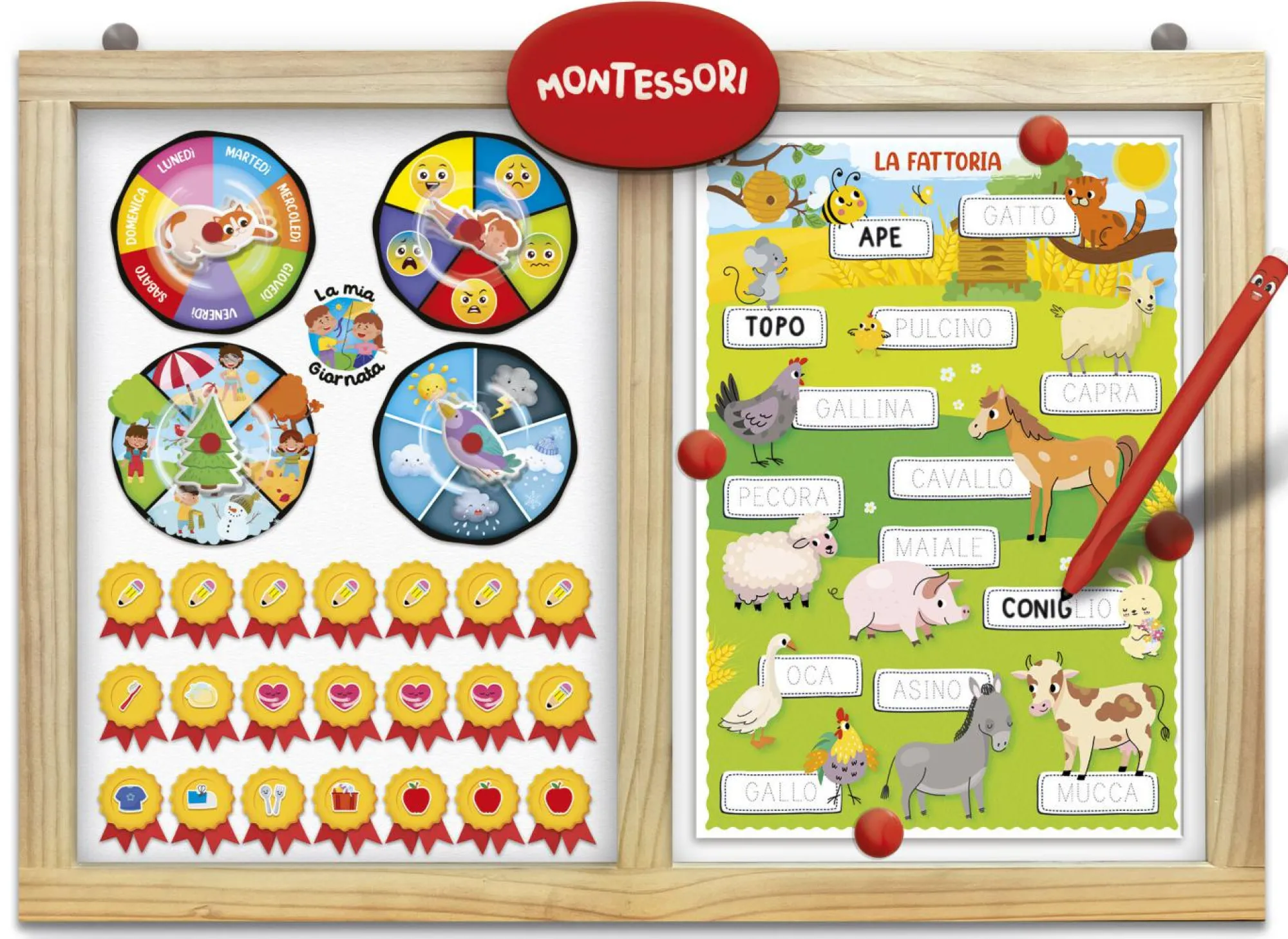 Lavagna da montare con cornice in legno – Sagome autocorrettive – schede attività – Penna Montessori – Istruzioni