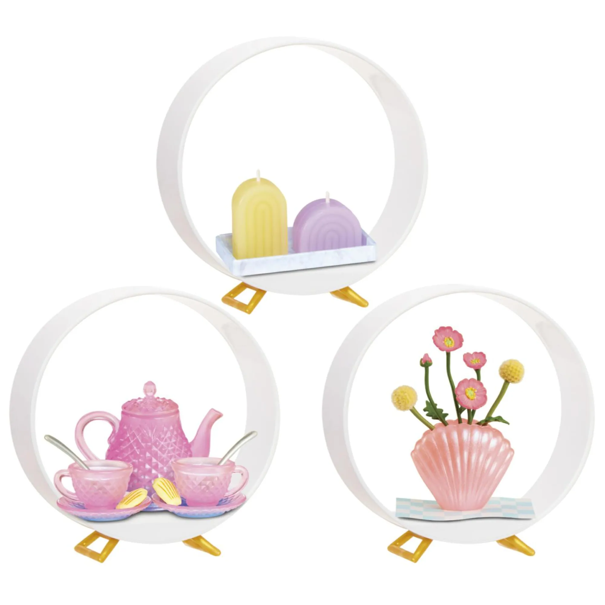 Ogni sfera viene fornita con mini oggetti realistici per modellare le tue mini repliche lifestyle preferite e dei pezzi di arredamento per la casa! Dalle candele, alle tazze da tè, alle teiere, ogni confezione è una sorpresa!
