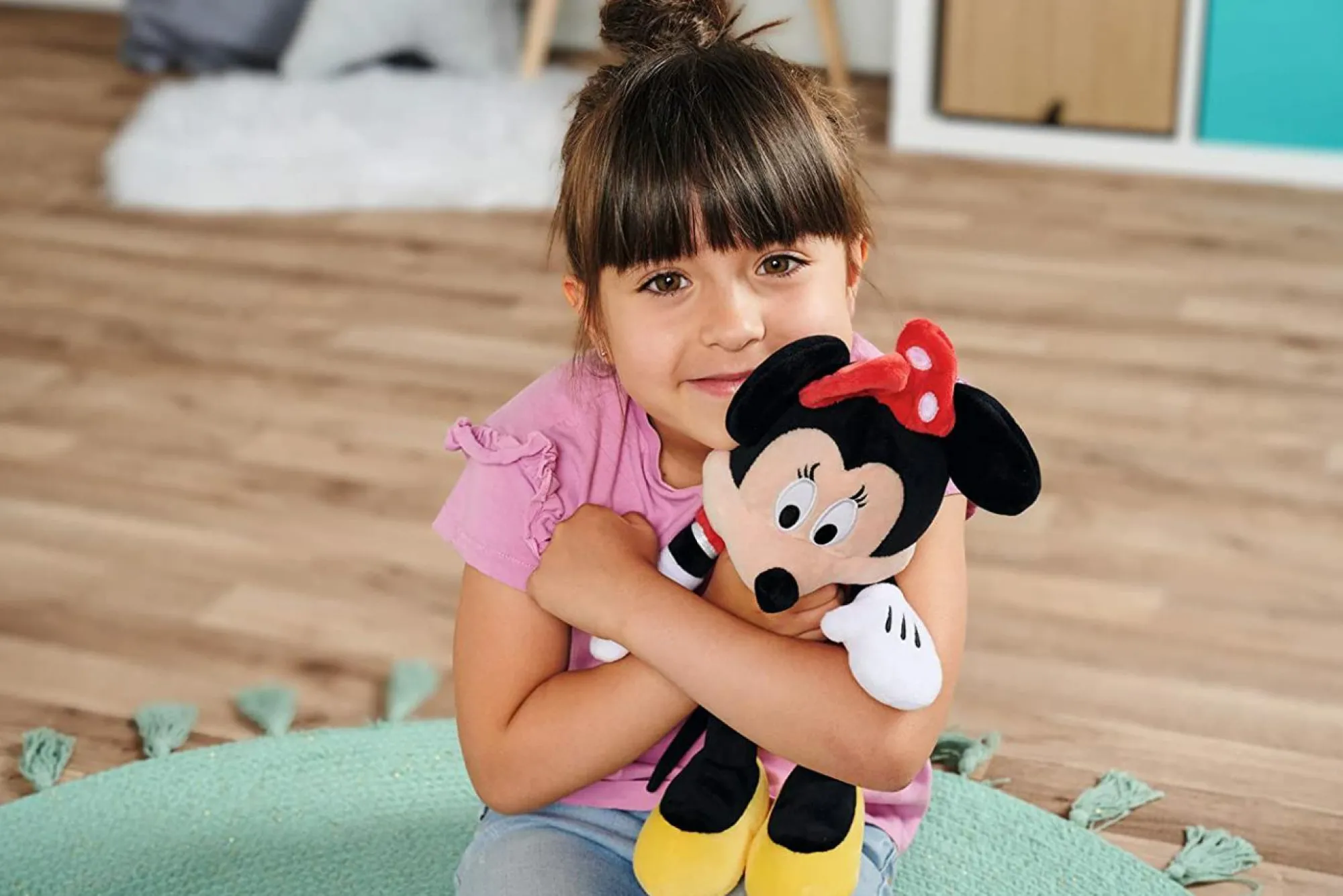 Personaggio Disney Minnie con abito rosso. Morbido peluche da 35 cm, adatto anche ai più piccoli, a partire da 0 mesi.