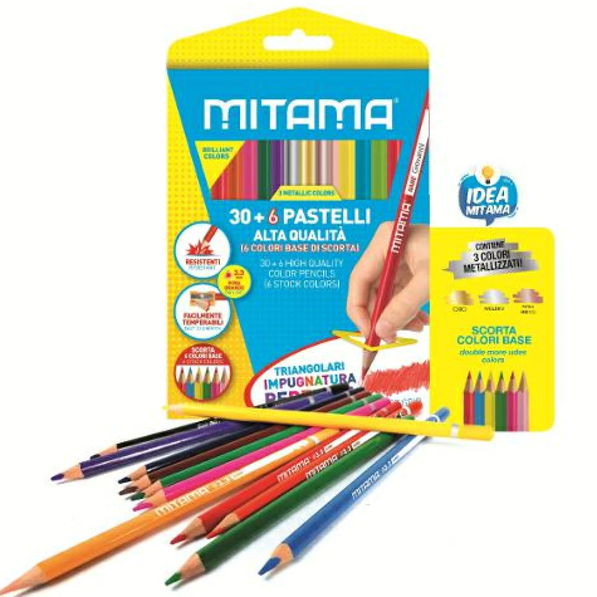 36 Pastelli personalizzabili e triangolari, per facilitare la corretta impugnatura