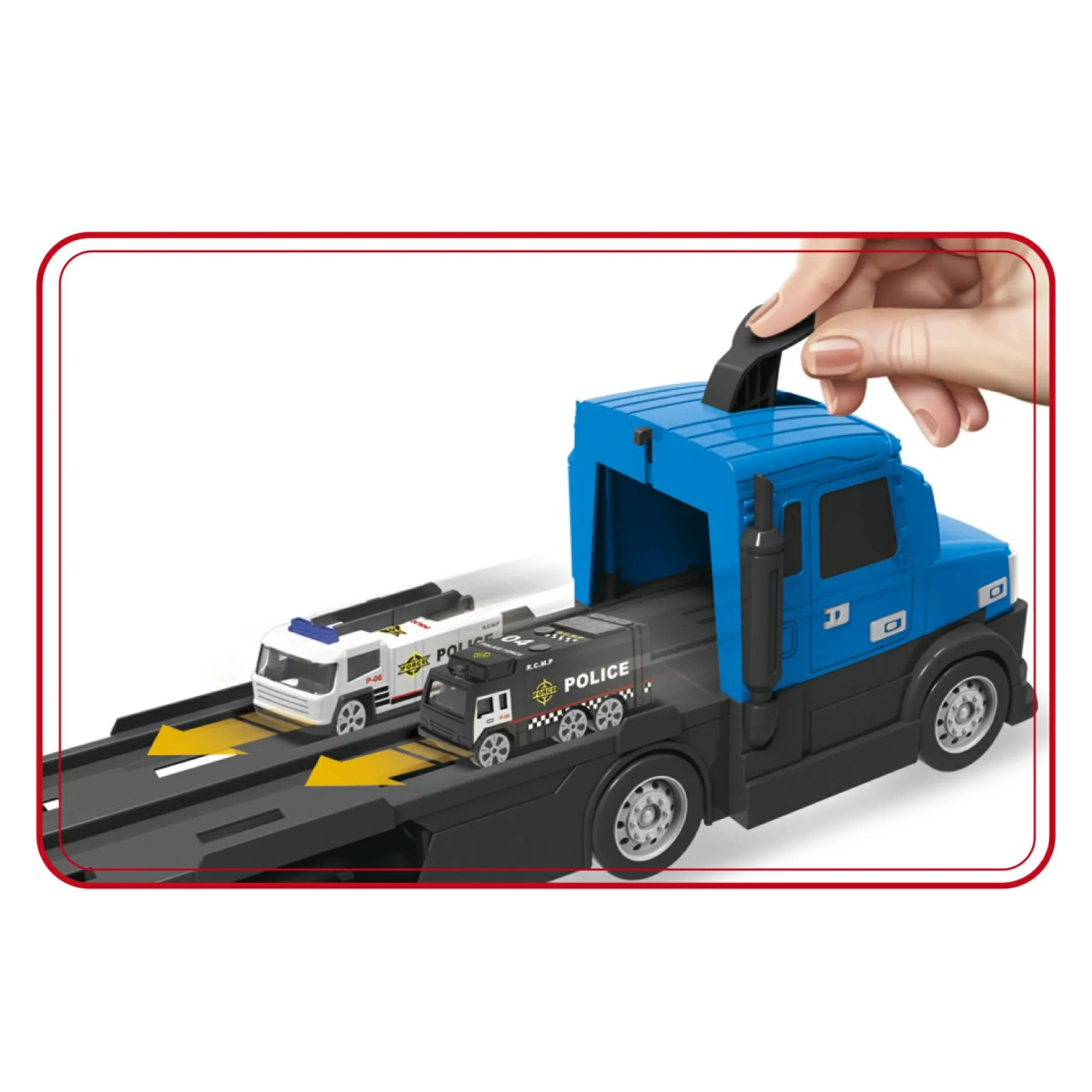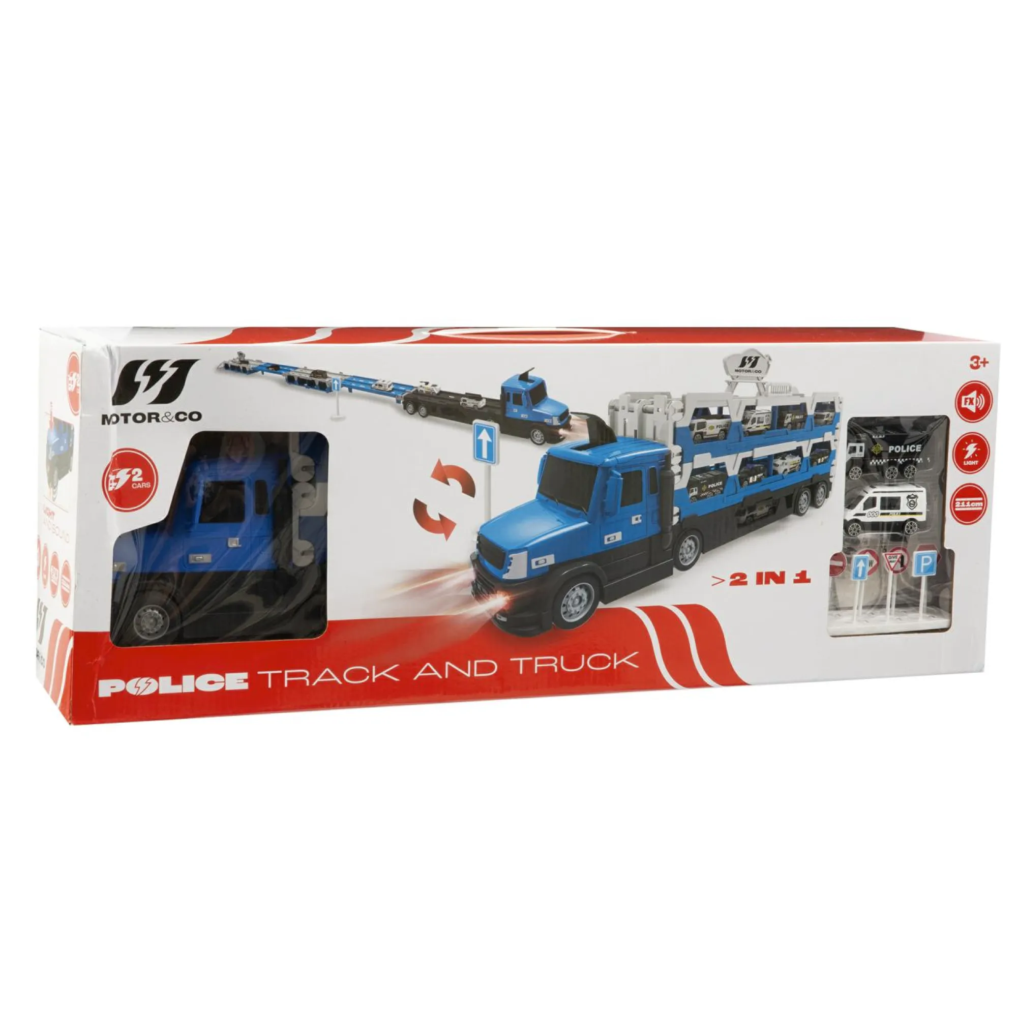 Camion della polizia Motor&Co. 2 in 1: Trasportatore e pista