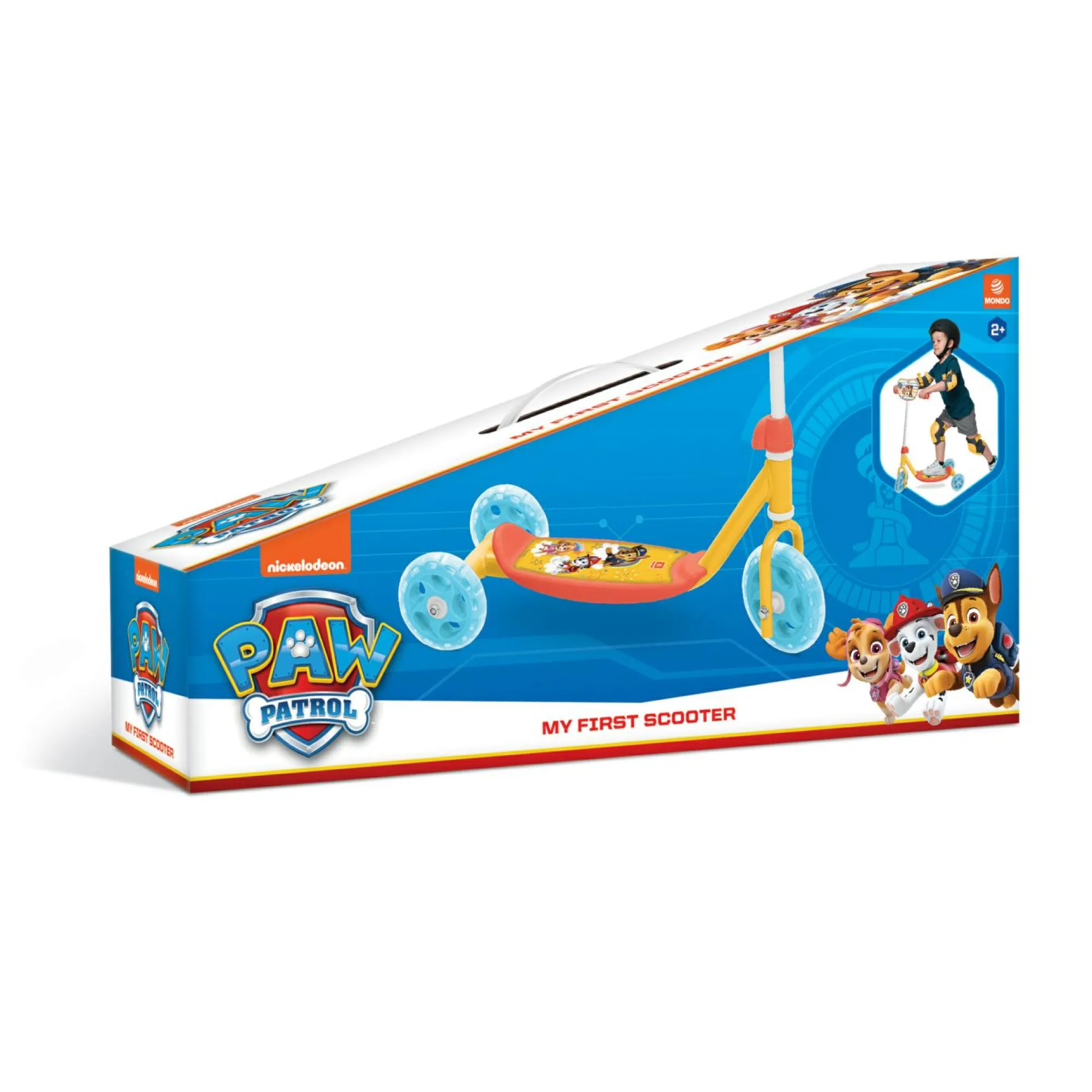 Design Funzionale e Adattabile: Manubrio regolabile (58-65 cm) per crescere con il bambino, vivace grafica Paw Patrol e pratico borsello porta oggetti incluso.