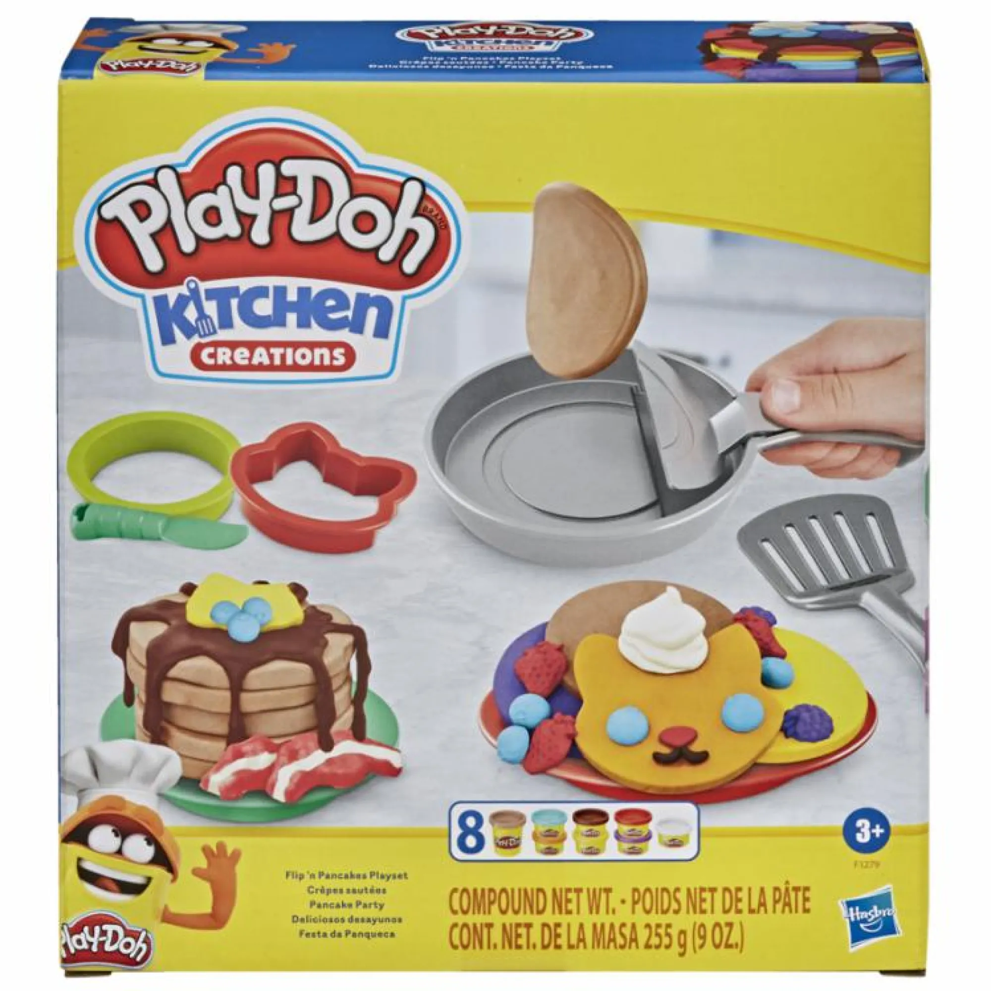 GIRA E DIVERTITI CON LA TUA PADELLA GIOCATTOLO: Grazie a questo giocattolo da colazione Play-Doh per bambini dai 3 anni in su potrai realizzare i tuoi pancake Play-Doh e girarli con il pulsante sulla padella