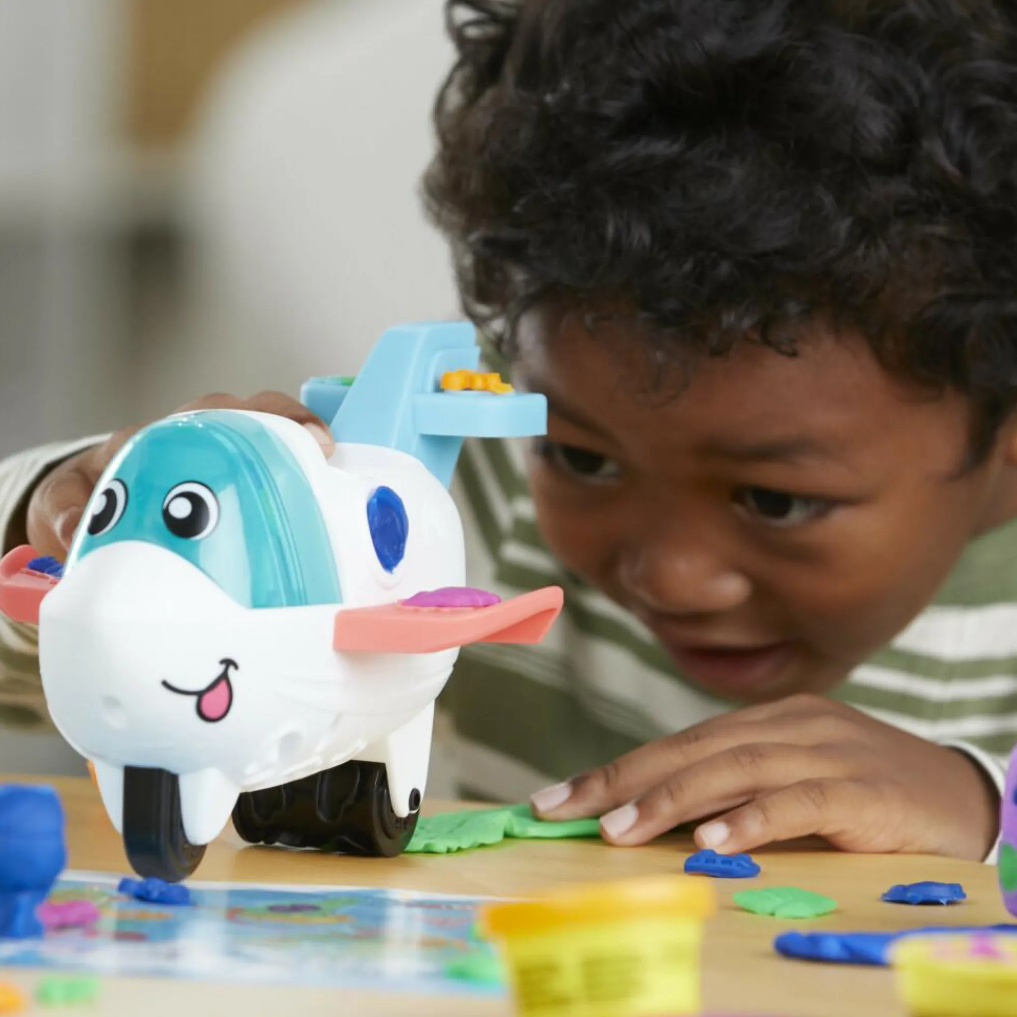 AEREO GIOCATTOLO: questo simpatico aereo giocattolo imprime delle divertenti nuvole sulla pasta modellabile se fatto passare su di essa! Presenta anche uno stampino nella cabina di pilotaggio per creare piloti fatti di Play-Doh.
