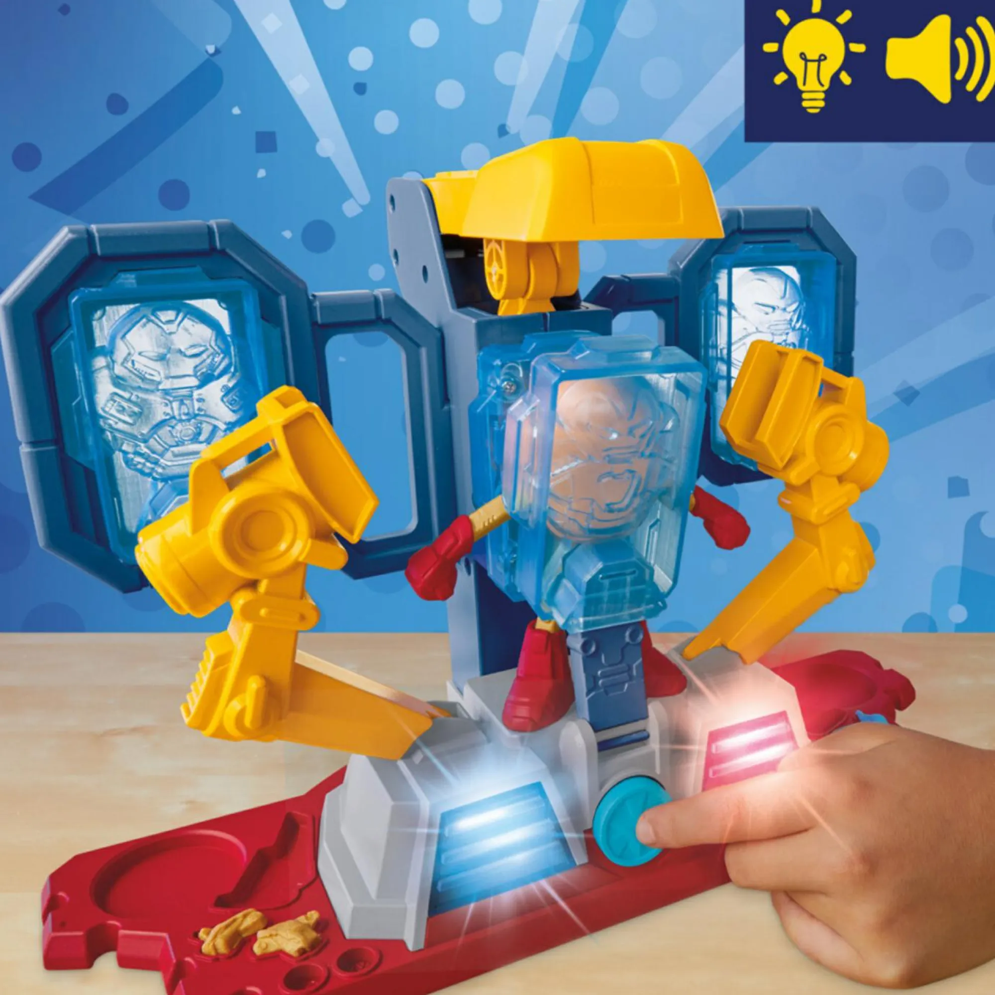 Action figure di Iron Man: Incluse armature Mark 3, Mark 85 e Hulkbuster per potenziare l’action figure flessibile di Iron Man, con 6 colori Play-Doh.