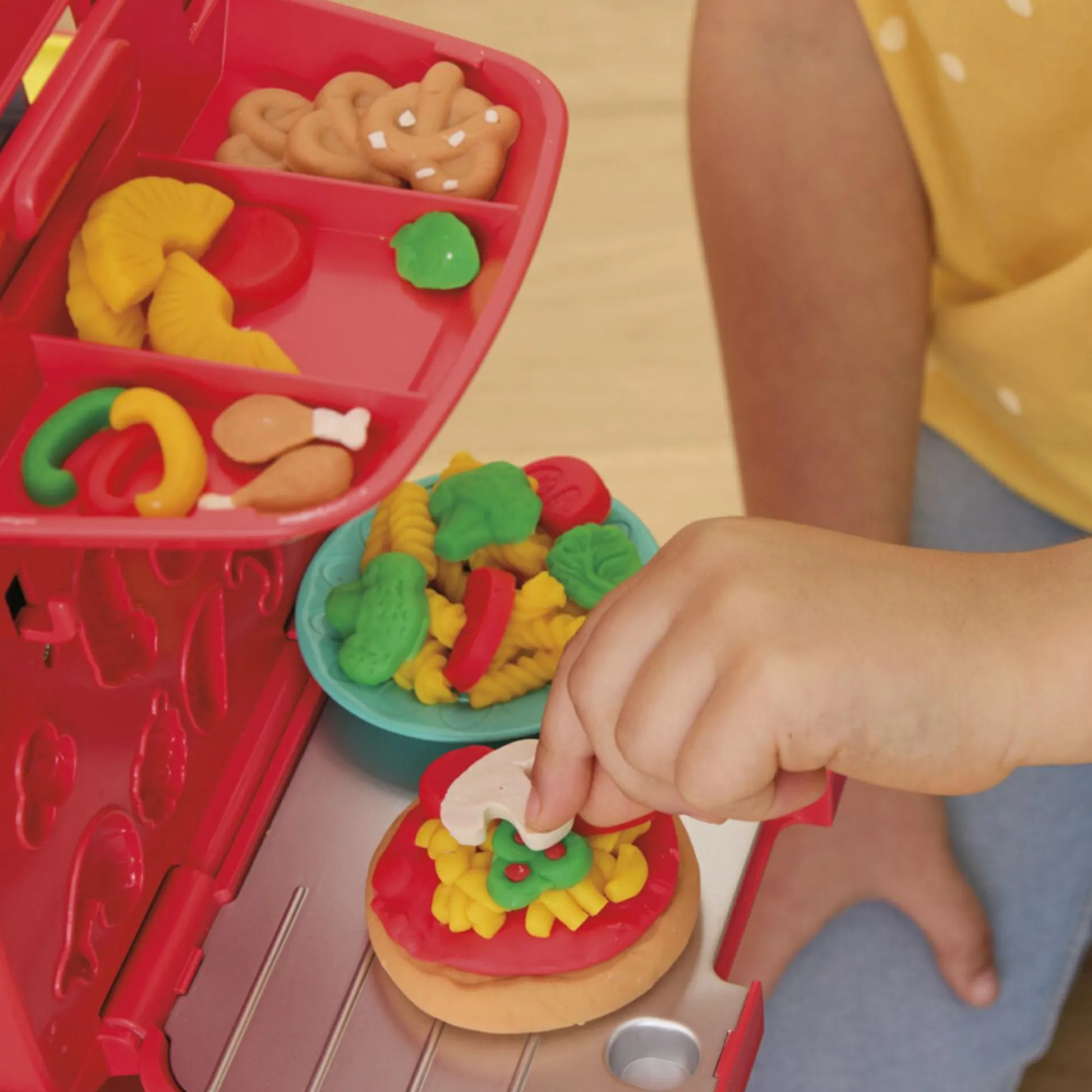 PREPARA E CONSEGNA PIZZE PLAY-DOH: Crea pizze con accessori da cucina e consegnale suonando il clacson.
