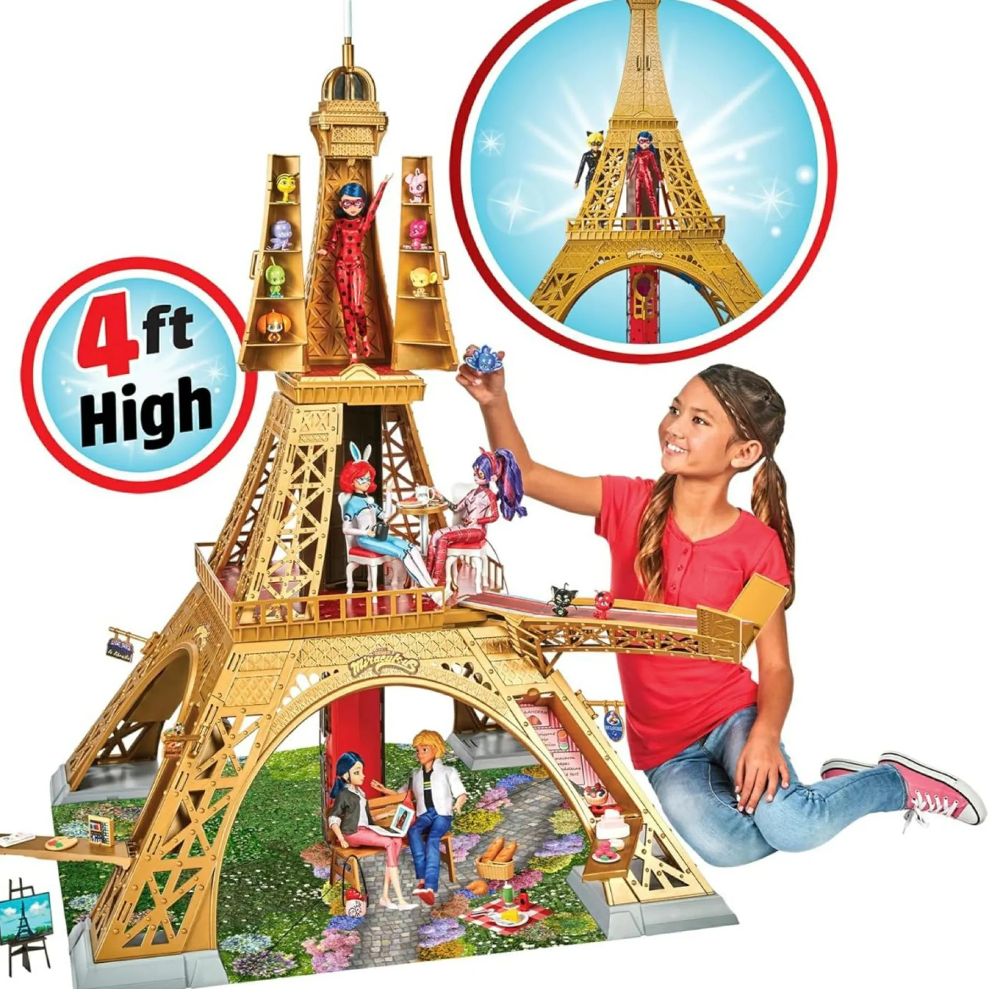 Grande Torre di Parigi: Playset deluxe alto 1,20m, replica del celebre monumento di Parigi con piani, negozi e dettagli ispirati alla serie Miraculous.