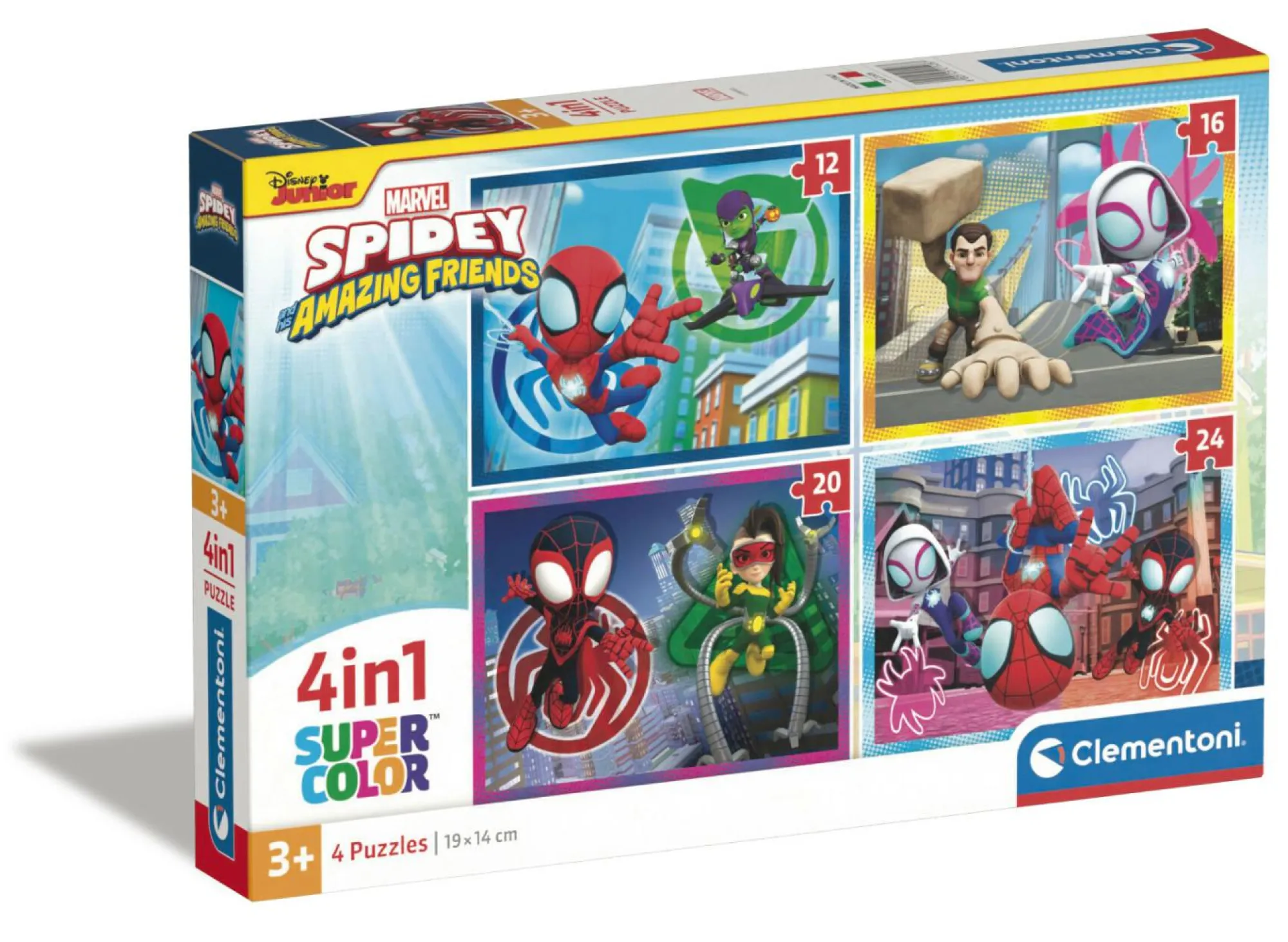 Puzzle bambini 4 in 1 con 4 immagini differenti e diverse pezzature Contiene: 1 puzzle da 12 pezzi, 1 puzzle da 16 pezzi, 1 puzzle da 20 pezzi e 1 puzzle da 24 pezzi.