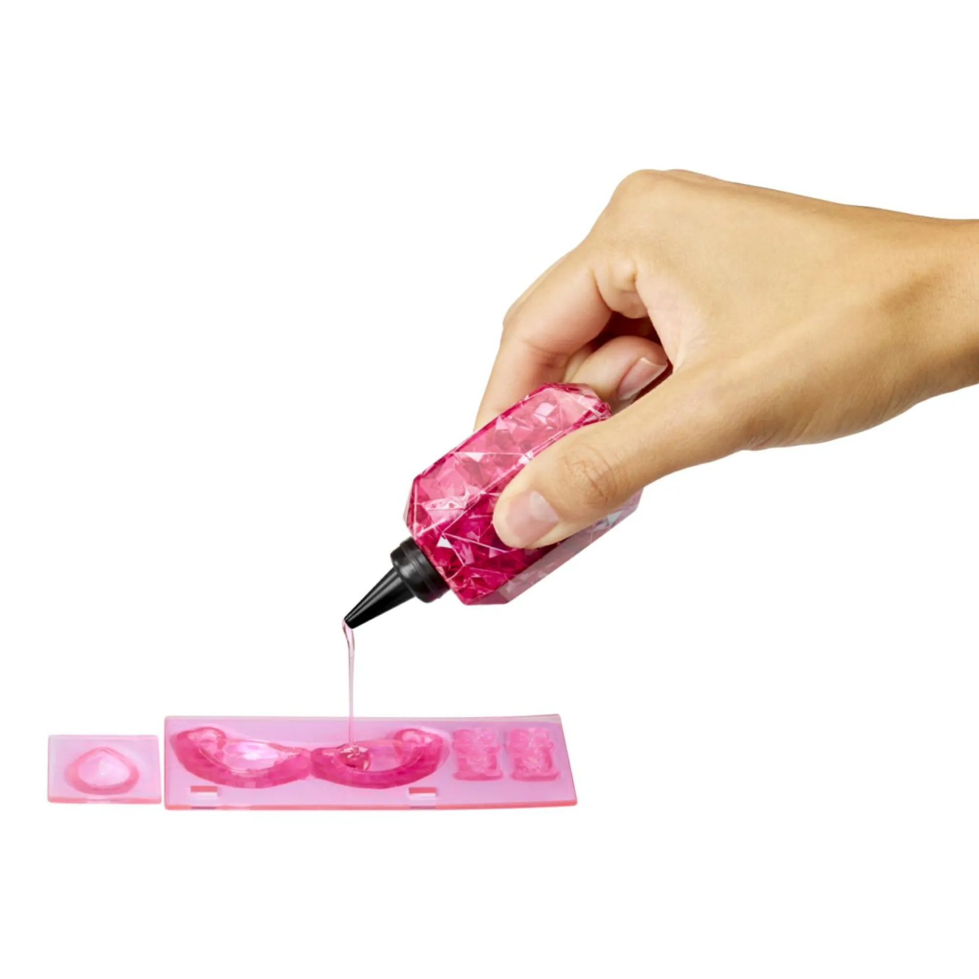 Versa la resina nello stampo. Metti in posa alla luce del sole per qualche minuto. Estrai il cristallo dallo stampo. Inserisci il cristallo nel supporto. Gioca con la bambola e con tutti i bellissimi accessori