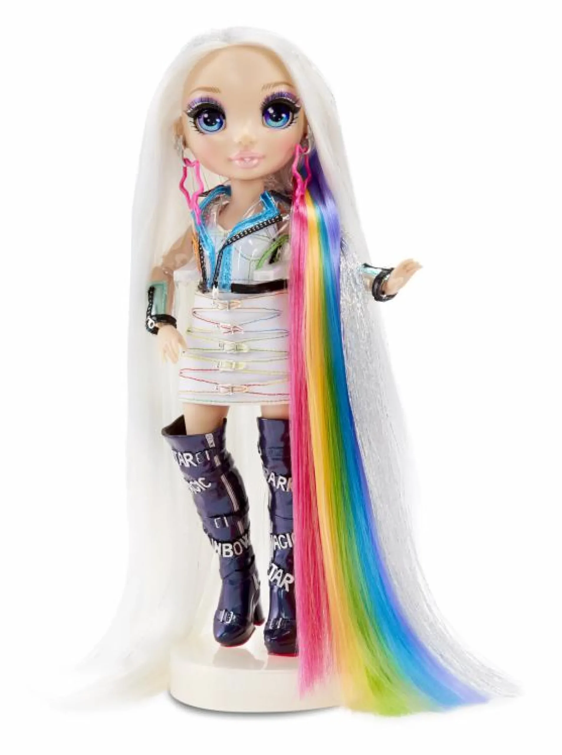 PER TE E LA TUA BAMBOLA: crea bellissimi capelli arcobaleno per te e la tua bambola. Suggerimento degli esperti: quando disimballi la bambola, lavale i capelli per rimuovere il gel e lascia asciugare. Sarà pronta per l’hair styling!