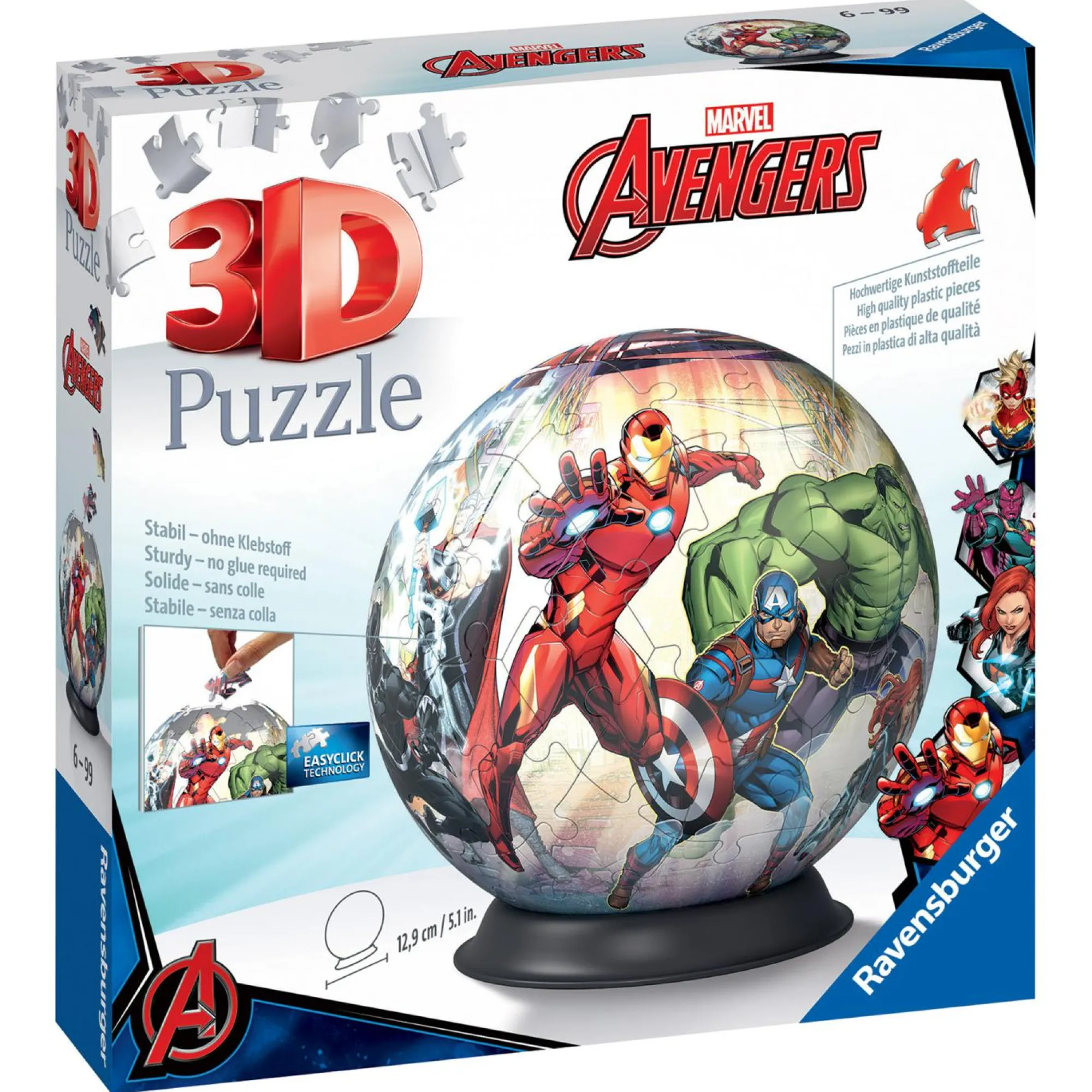 La sfera puzzle da assemblare coni personaggi degli Avengers è disponibile in versione 3D solo con Ravensburger.